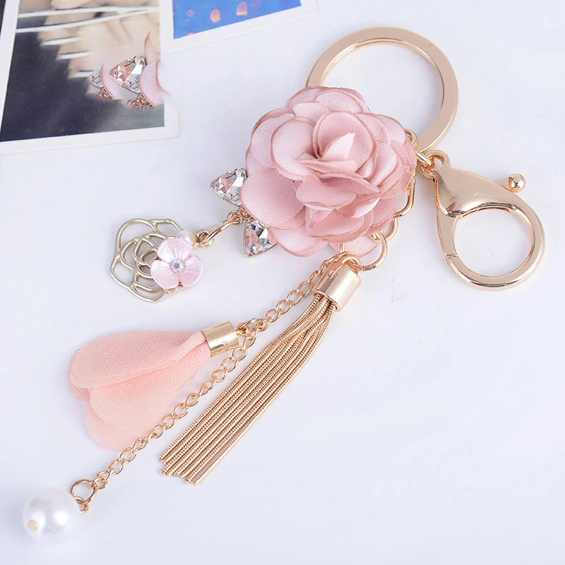 Новый стиль для свежести тканей цветок кисточка цепь автомобильный брелок лепесток имитация жемчуга изысканный брелок для девочек сумка кулон подарок