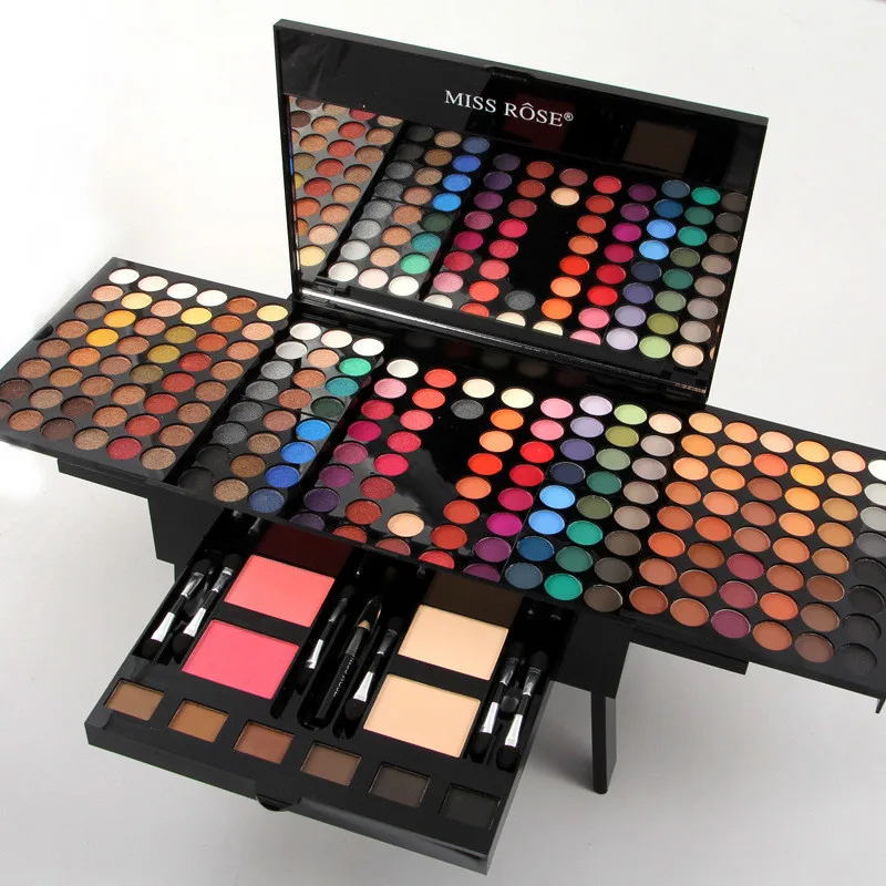 Палетка матовых нюдовых мерцающих теней для век, 180 цветов, набор для макияжа с кисточкой, зеркальный термоусадочный профессиональный косметический чехол, набор для макияжа