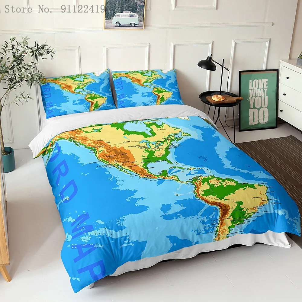 3D печатная карта мира Постельное белье пододеяльник одиночный король Queen Размеры Стёганое одеяло, покрывало, стеганное ватное одеяло, набор 2/3 шт постельное белье