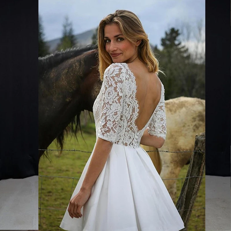 Женское свадебное платье It's yiiya, белое кружевное платье до колена с полурукавами на лето 2021