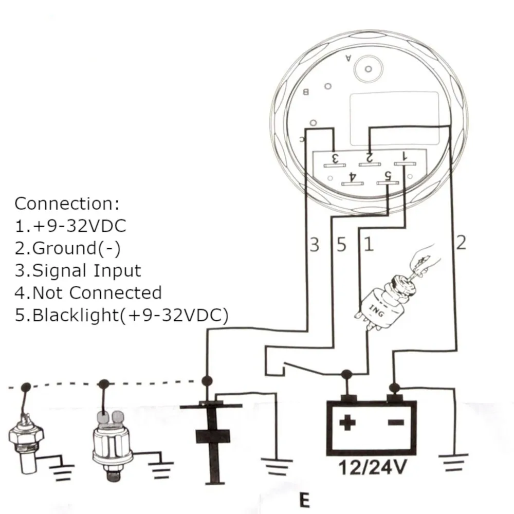 (1) сигнал: 0-190ом (2) рабочий ток ≤ 60 мм (3) Размер крепления: 52 мм (2 ") (4) Диапазон индикации: E-1/2-FULL (5) Продолжительное Рабочее напряжение: 9-32 В, до: 36 В (≤ 1 минуту)