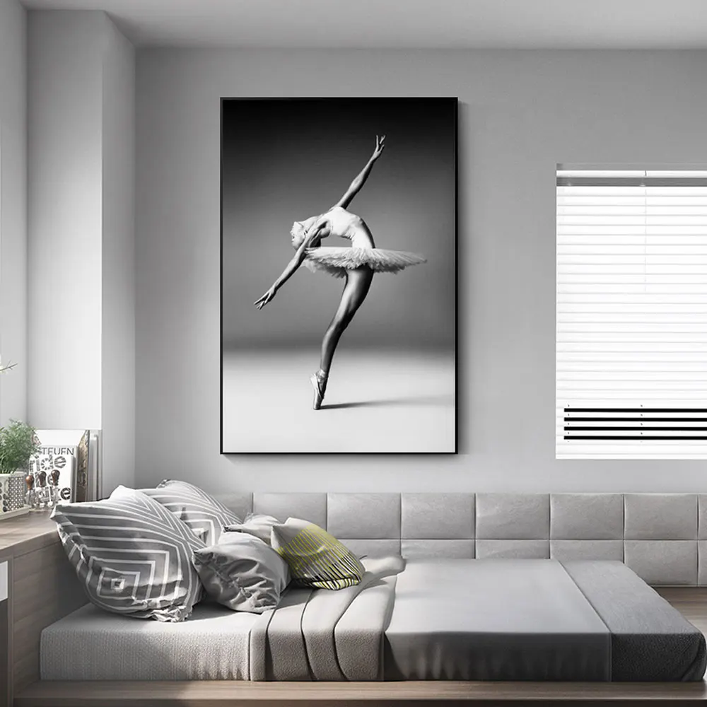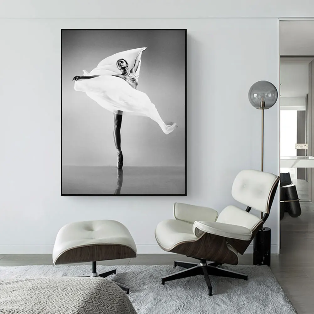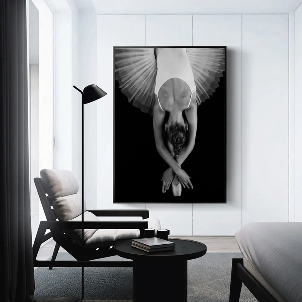 Черный и белый элегантный балетный танец холст печать плакатов фото Nordic Стиль девушка холст для живописи портретной фотографии Гостиная