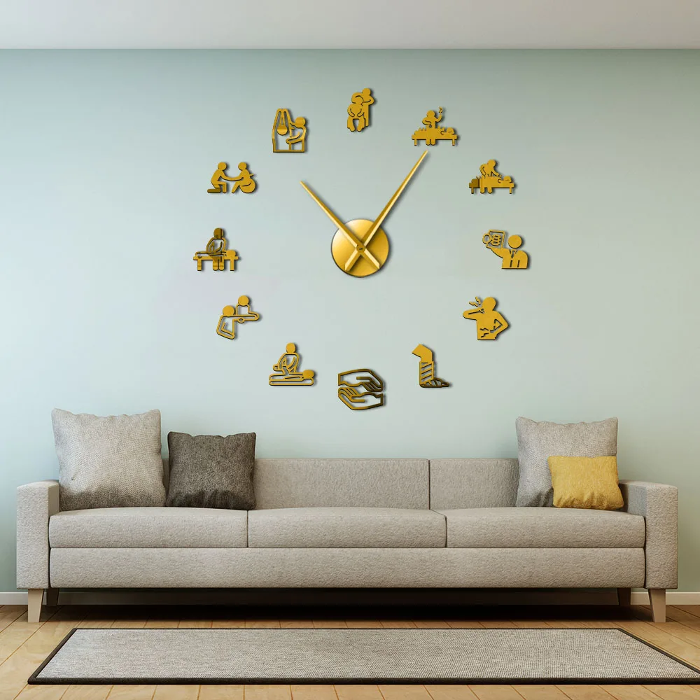 Большие настенные часы "сделай сам" для физиотерапии, акупунктурный массаж, акриловые зеркальные наклейки на стену, декоративные часы