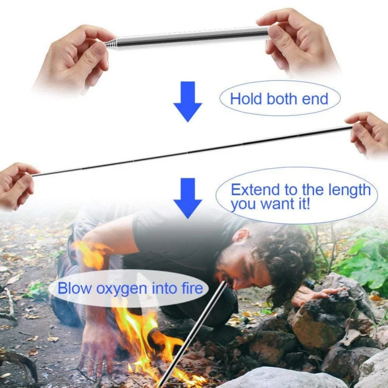 Портативная трубка для приготовления пищи на природе, выживания, трубка для огня, трубка из нержавеющей стали, выдвижная трубка для кемпинга