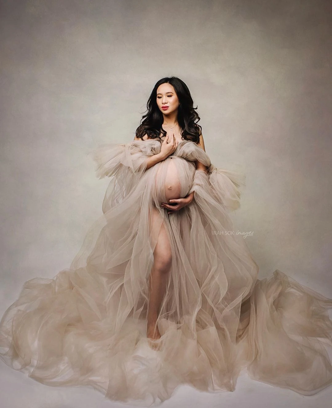 Очаровательное Пышное Тюлевое Платье для фотосессии с оборками и длинным шлейфом, женские пышные платья для беременных, размера плюс