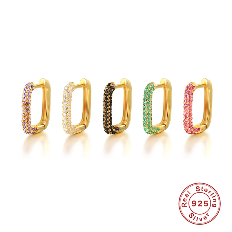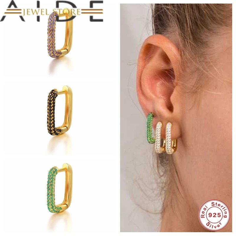 Женские U-образные серьги-кольца с разноцветным цирконием Aide S925, большие круглые ювелирные украшения в подарок