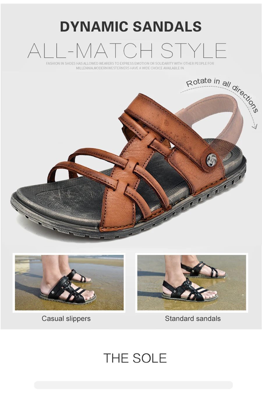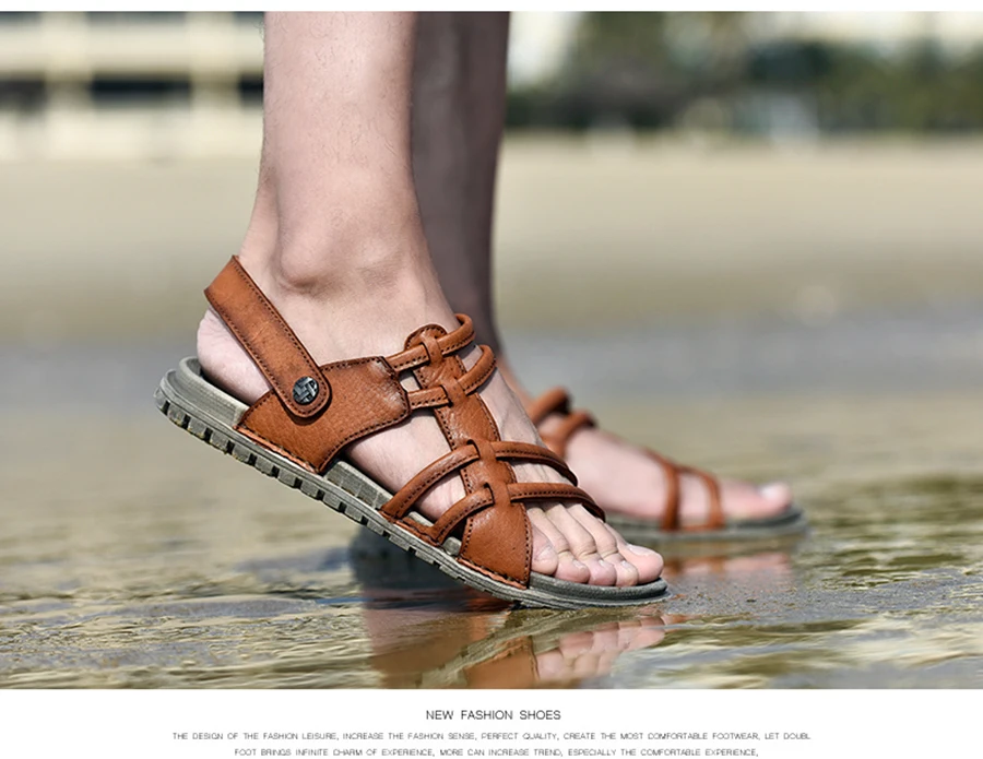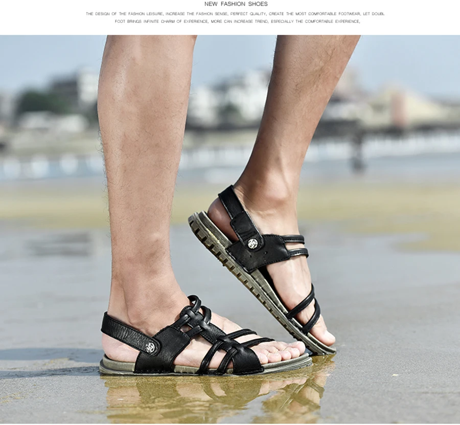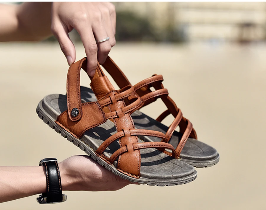 Мужские кожаные сандалии; Новинка; Пляжная мужская повседневная обувь; Уличные летние женские сандалии летние сандалии для мужчин