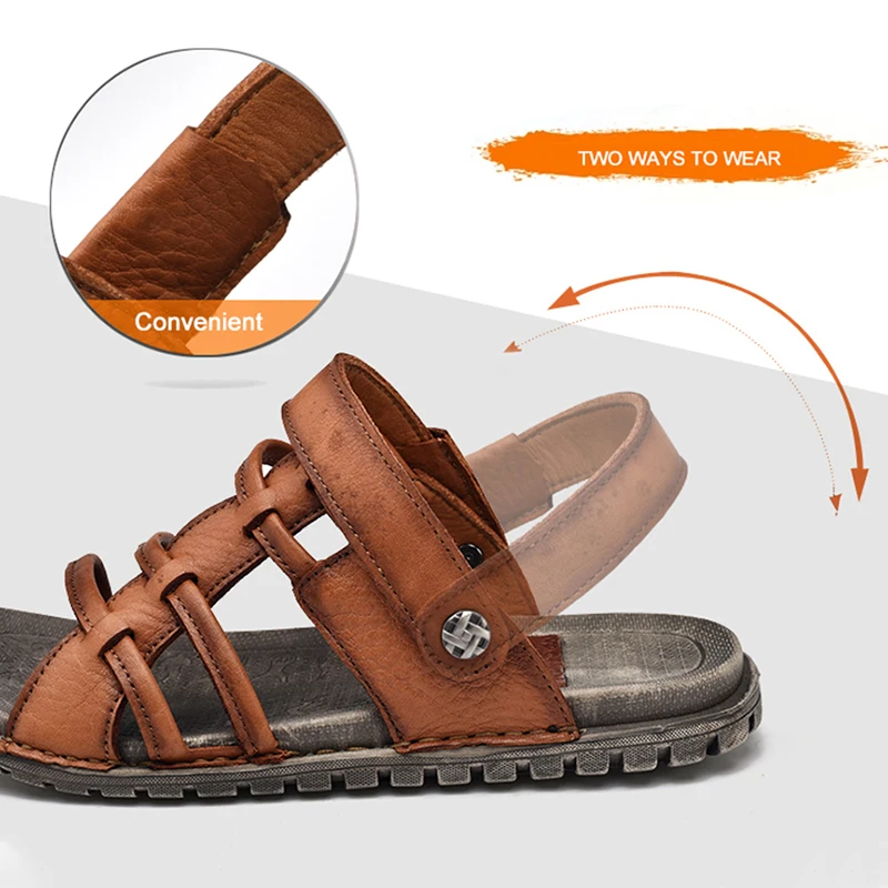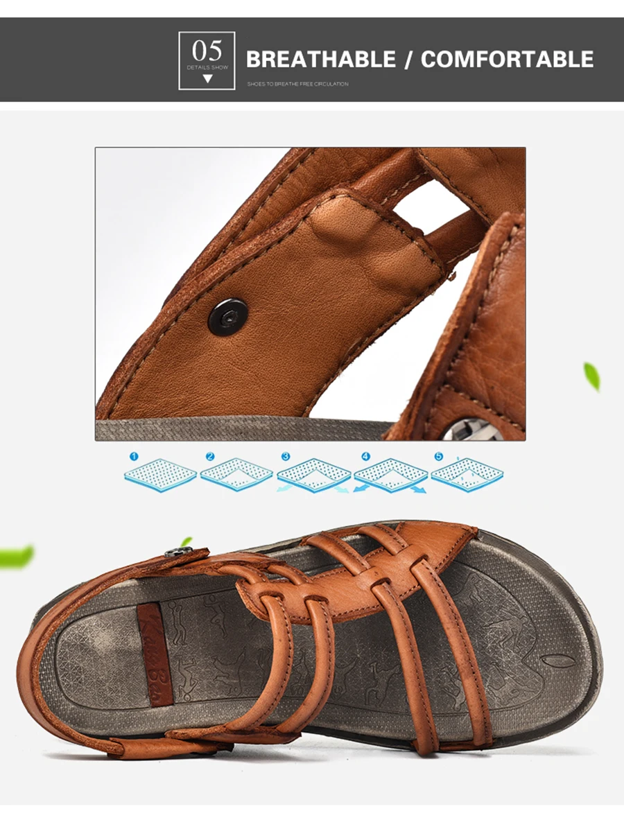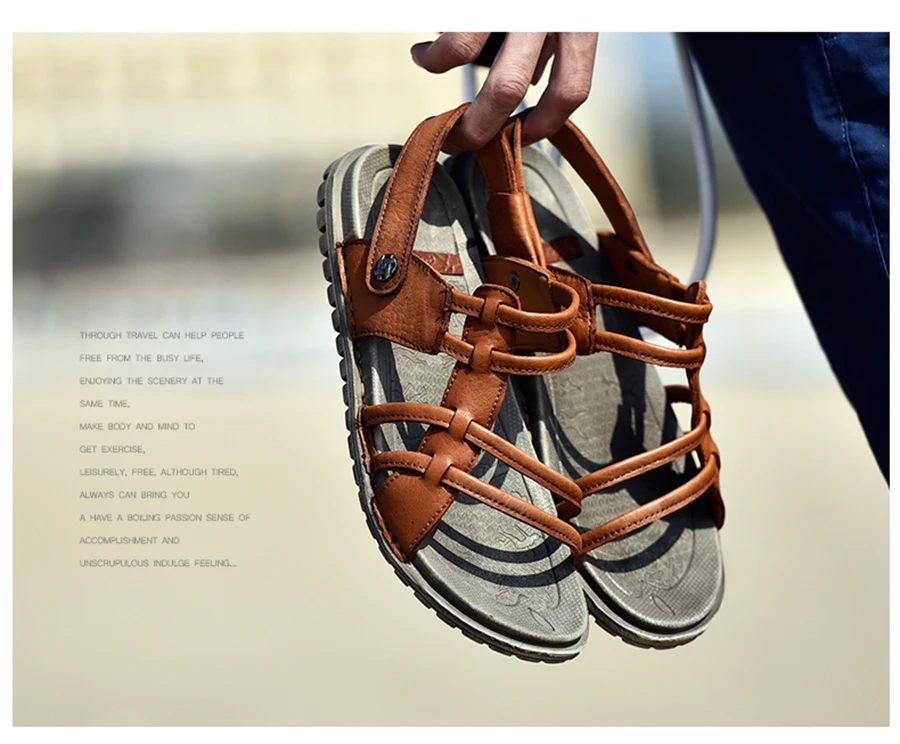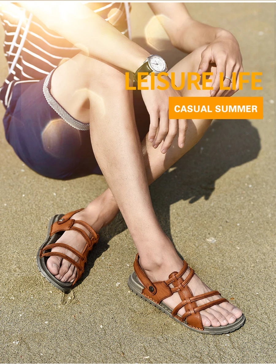 Мужские кожаные сандалии; Новинка; Пляжная мужская повседневная обувь; Уличные летние женские сандалии летние сандалии для мужчин