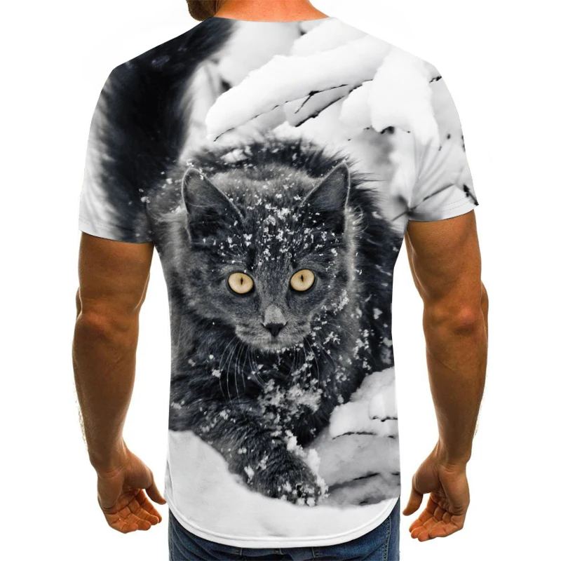 2021 Новая Мужская модная классная футболка с кошачьим принтом, летняя футболка с короткими рукавами, Мужская футболка XXS-6XL