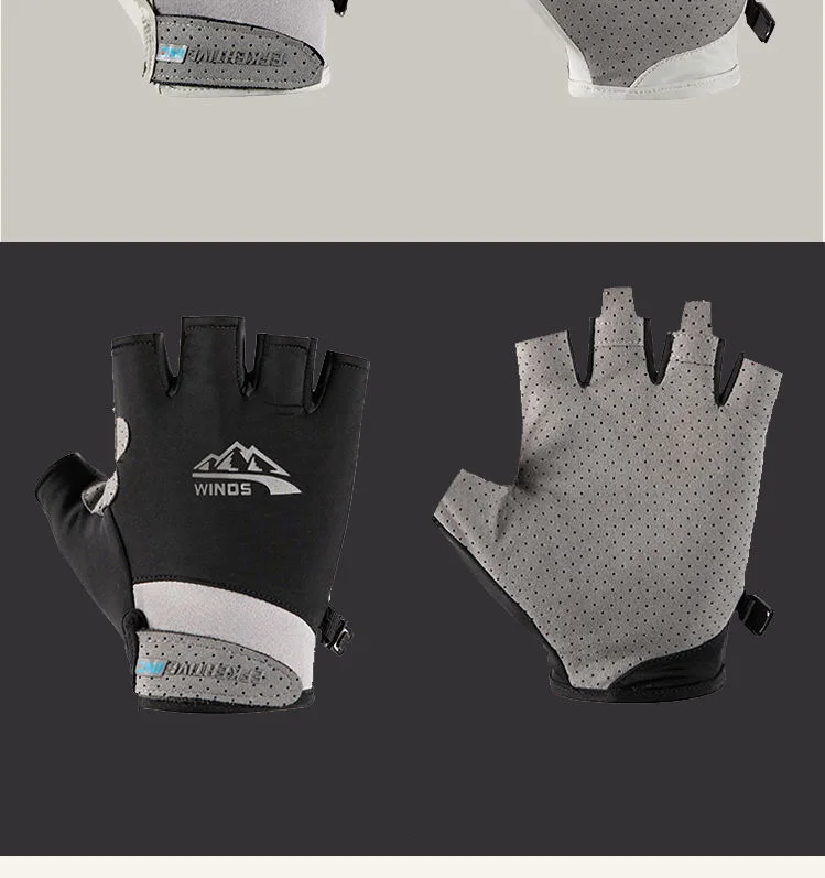 Летние шелковые мужские перчатки, тонкие светильник спортивные перчатки без пальцев для вождения, рыбалки, езды на велосипеде, бега, нескользящие перчатки для сенсорного экрана