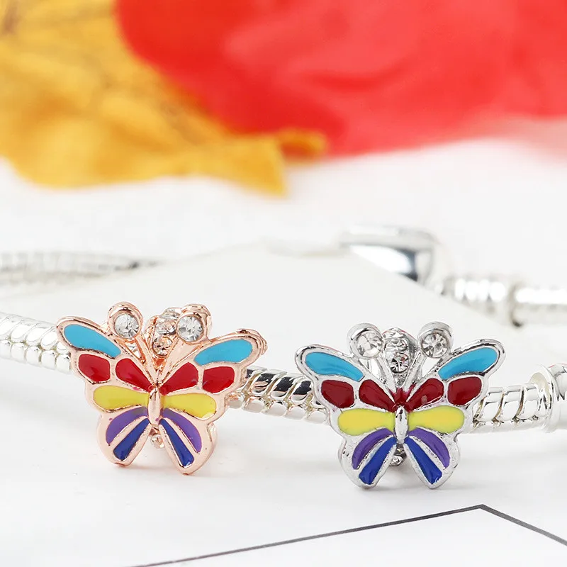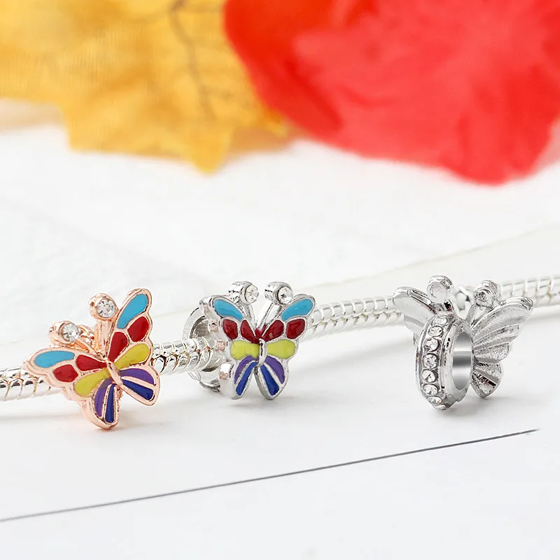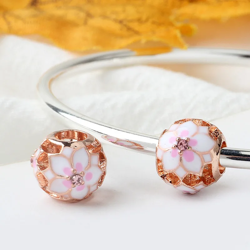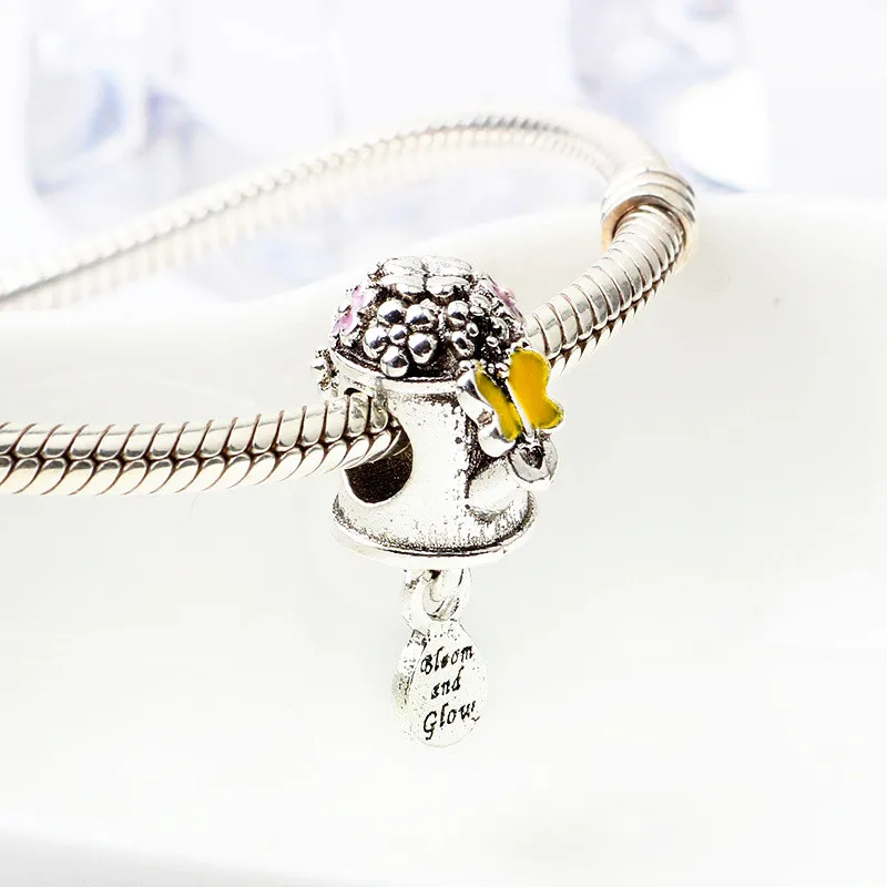 Новый продукт, Полые бусины с цветами, листьями, бабочками, блестящие бусины, подходят для оригинального браслета Pandora, Женские Ювелирные изделия сделай сам, подарки