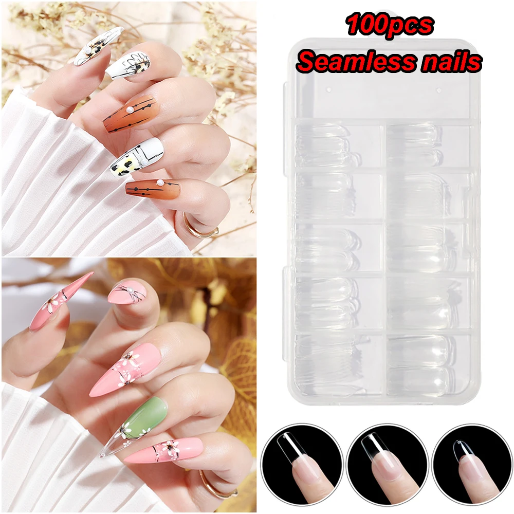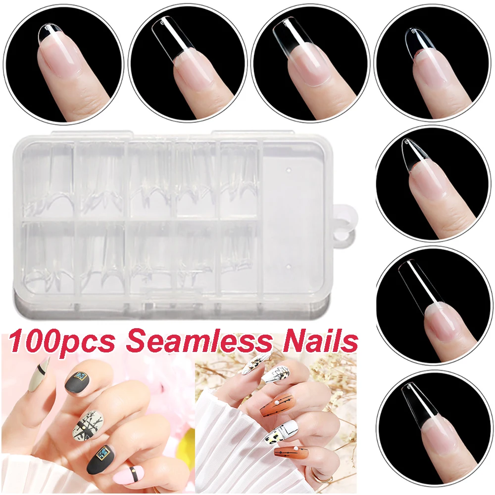 100 шт.кор. прозрачные французские бесшовные накладные ногти, полное покрытие, балерина, гроб, система удлинения ногтей, накладные ногти, накладные ногти