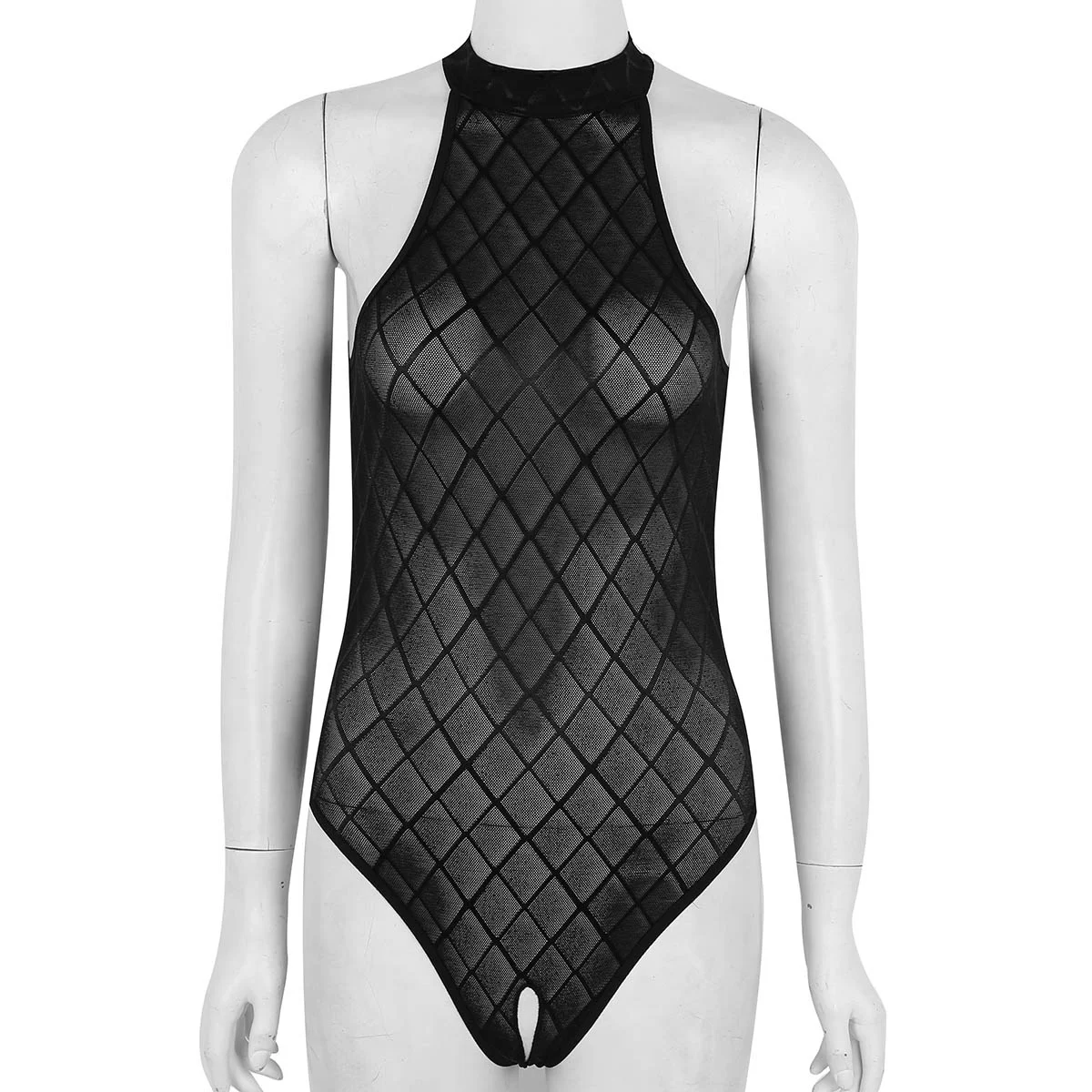 Для женщин сексуальное боди, женское белье Открытые Croch в клетку платье Прозрачное нижнее белье порно Нижнее бельё для девочек топ без рукавов с высокой горловиной боди Тедди комбинезон одежда для сна