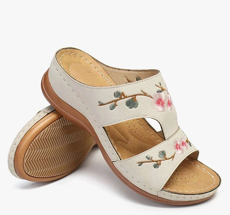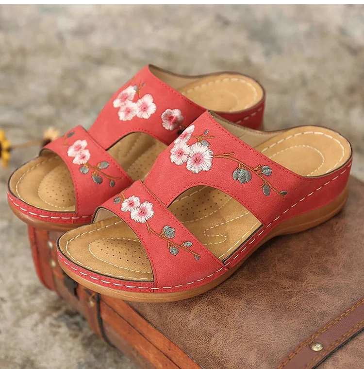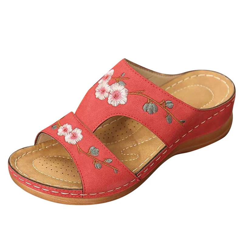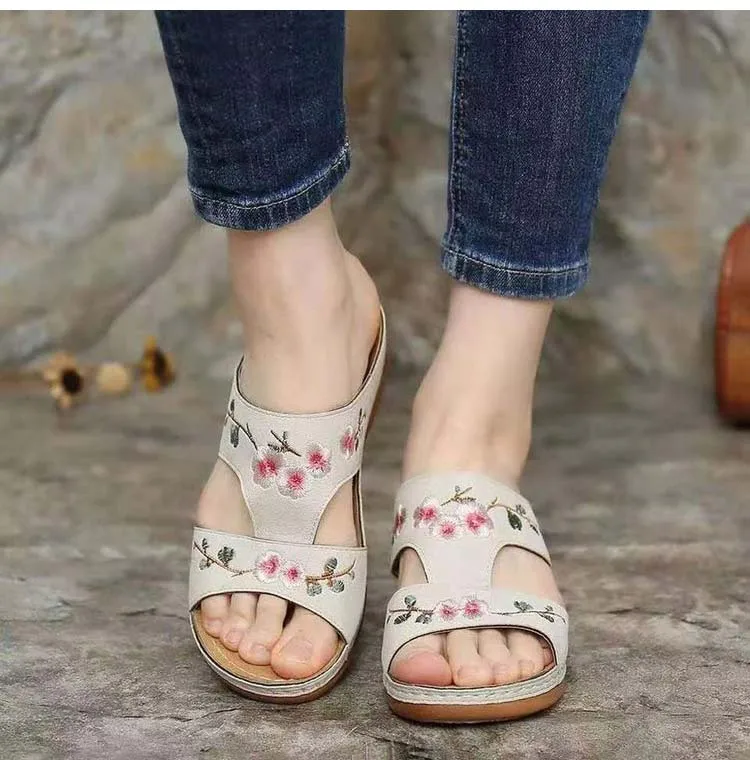 2021 женская обувь на плоской подошве; Сандалии; Летние пляжные туфли с цветочным мотивом женская обувь; Уличные сандалии; Обувь с вышивкой; Женская обувь без застежки; Женская обувь на танкетке, женские сандалии