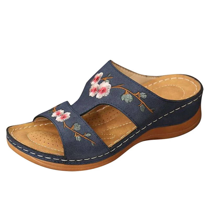 2021 г., женские сандалии на плоской подошве пляжные женские сандалии с цветами Уличная обувь с вышивкой женская обувь на танкетке без шнуровки, Sandalias