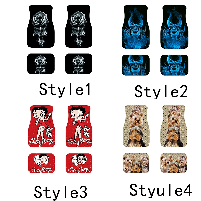 Коврик для ног автомобиля JUNTENG, 4 вида, с модным принтом, полный комплект, универсальный передний и задний, подходит для большинства грузовиков, нескользящий коврик, аксессуары