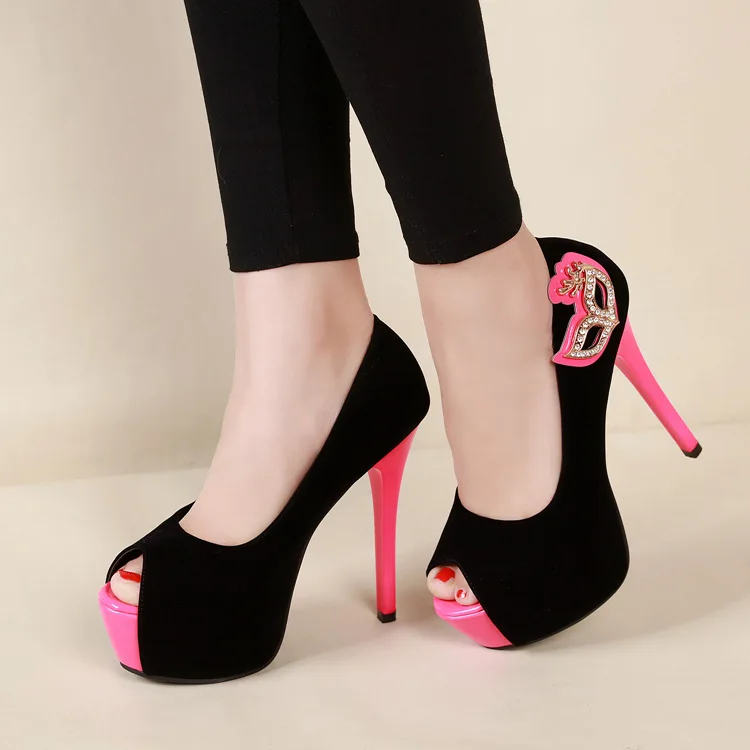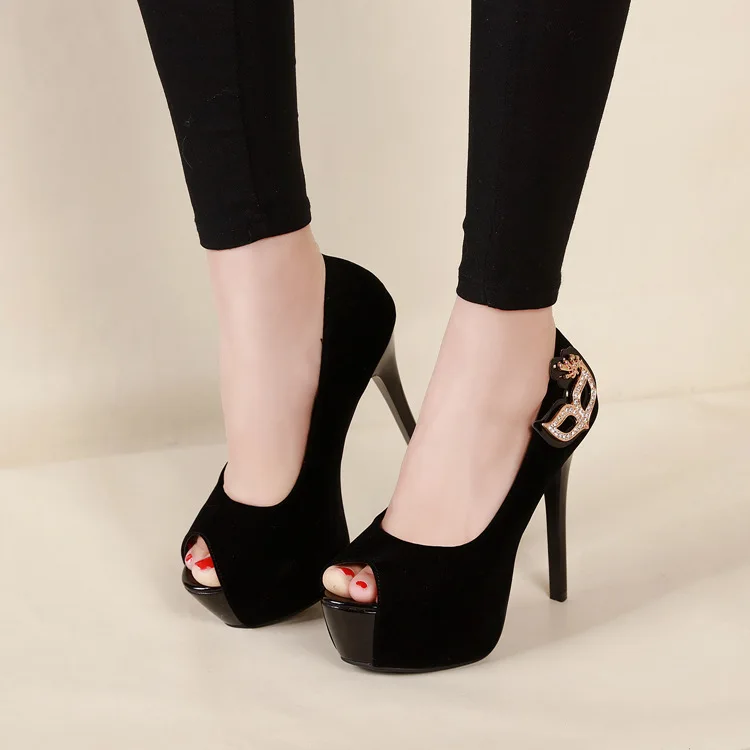 Женские босоножки на платформе, открытый носок, высокий каблук, пикантная вечерняя обувь, туфли-лодочки, платформа, черные