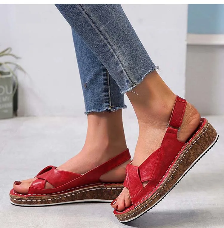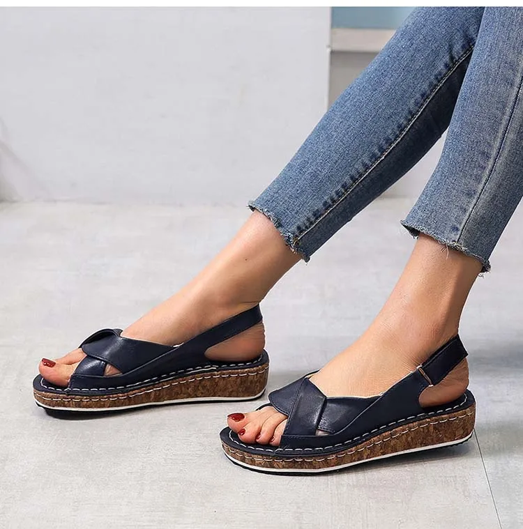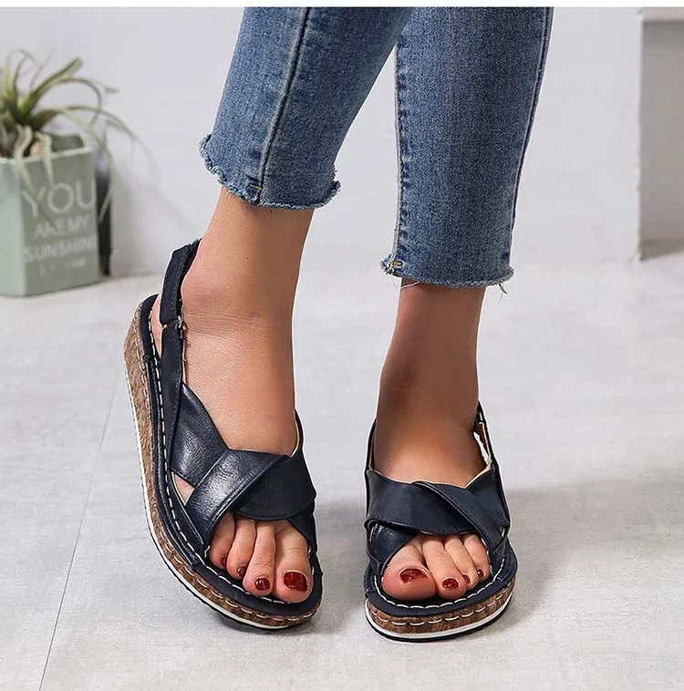Женские босоножки; Обувь на танкетке; Удобная обувь на плоской платформе; Женские повседневные мягкие сандалии с большим носком; Ортопедический корректор