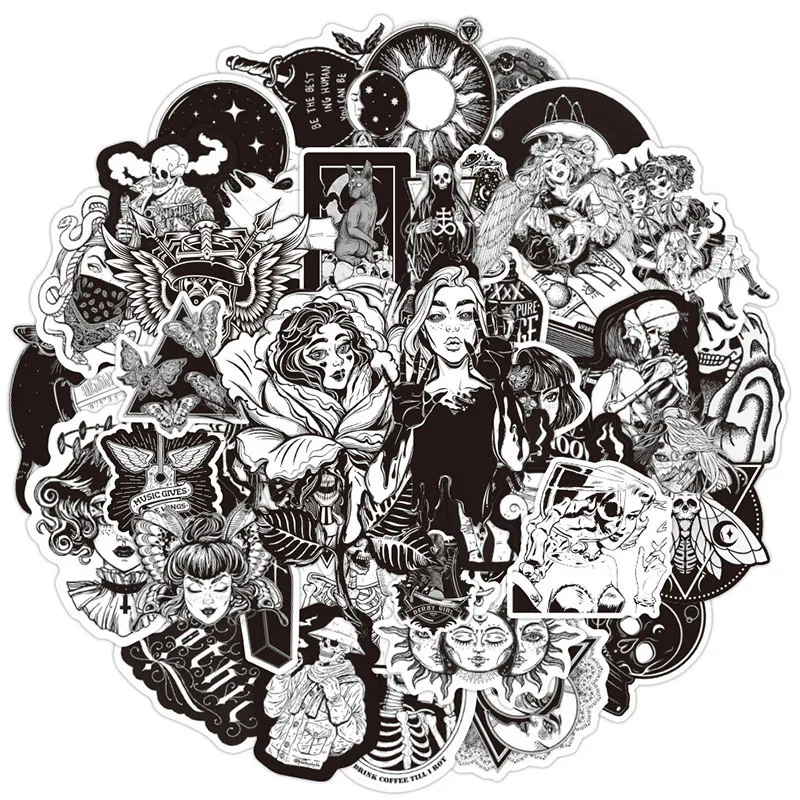103050 шт. черно-белые готические стикеры граффити в виде девушки и черепа для ноутбука, багажа, мотоцикла, телефона, скейтборда, наклейки