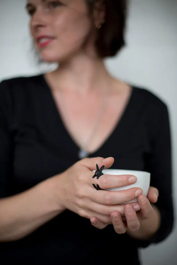Кольцо регулируемое в стиле хиппи для женщин и девушек, винтажное изящное кольцо с ручная работа Кролик, Кролик, животное, суставы пальцев, Подарочная бижутерия