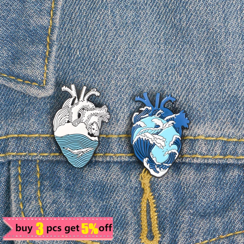 Анатомические эмалевые булавки в форме сердца человека, живопись маслом, океан, мир, Бабочка, роза, любовь, радуга, броши, булавка, значок, ювелирные изделия, подарки