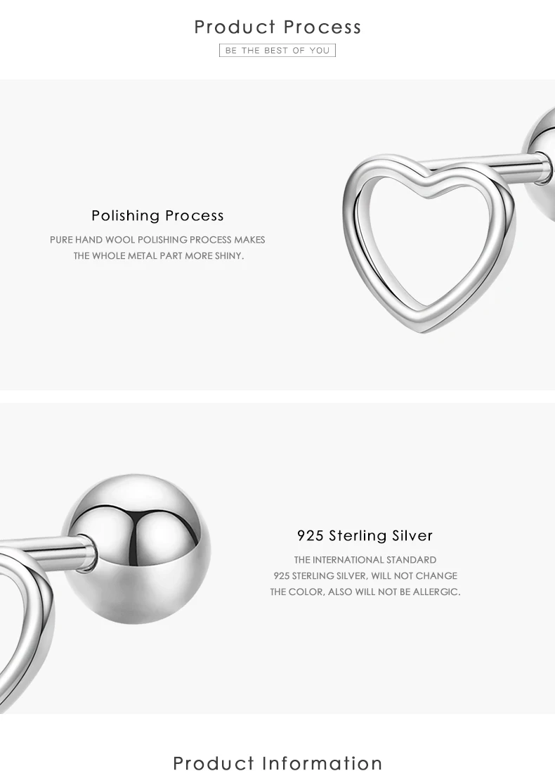 Colusiwei Горячая простой дизайн сердце Форма 925 стерлингового сер...
