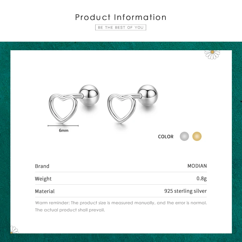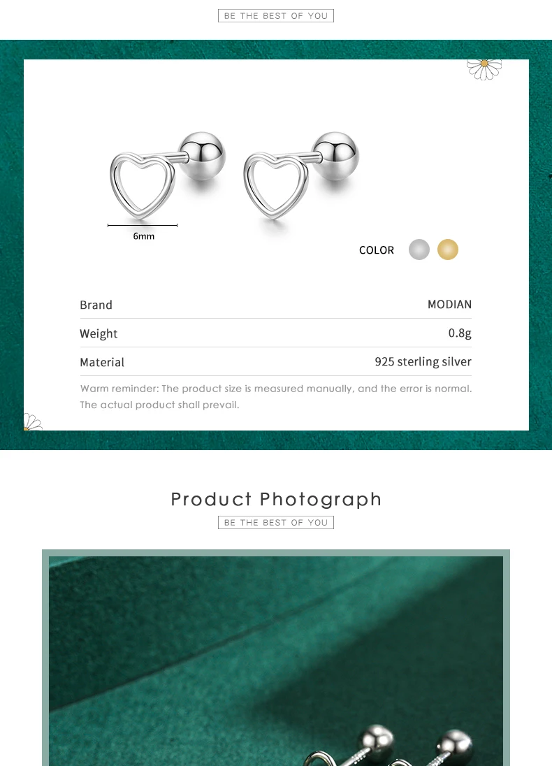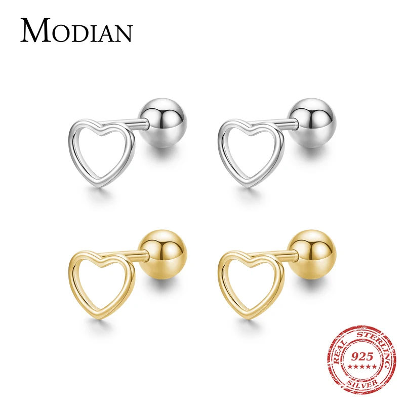 Modian 100% реальные 925 стерлингового серебра простой сердца серьг...
