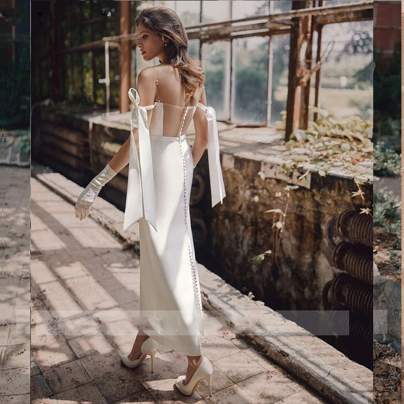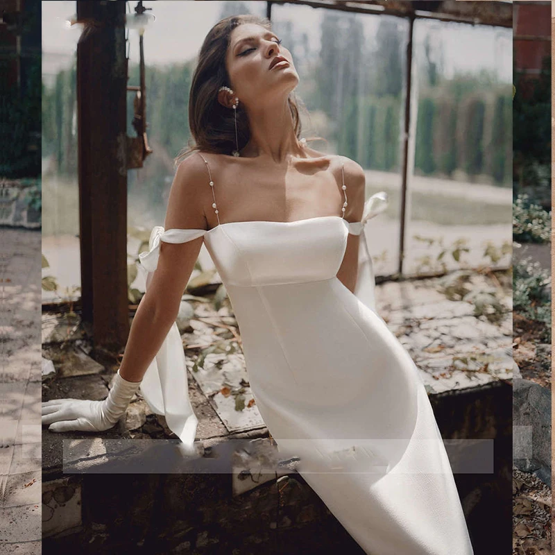Простые короткие свадебные платья 2021 женское элегантное атласное платье с жемчугом на тонких бретельках женское платье