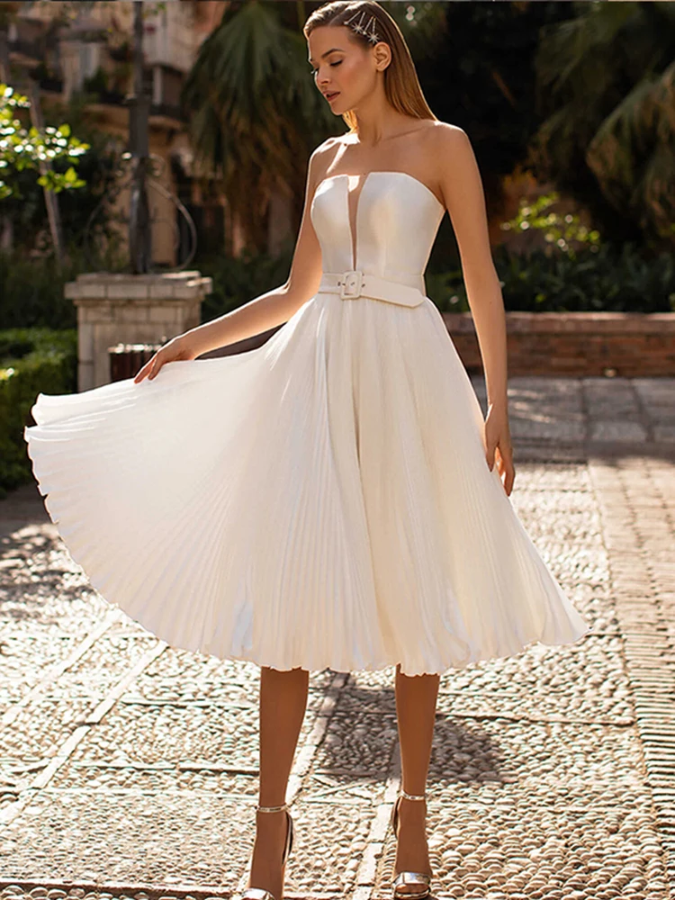Короткое свадебное платье 2021, простое ТРАПЕЦИЕВИДНОЕ свадебное платье, мягкое атласное Короткое свадебное платье, элегантное женское платье из Турции