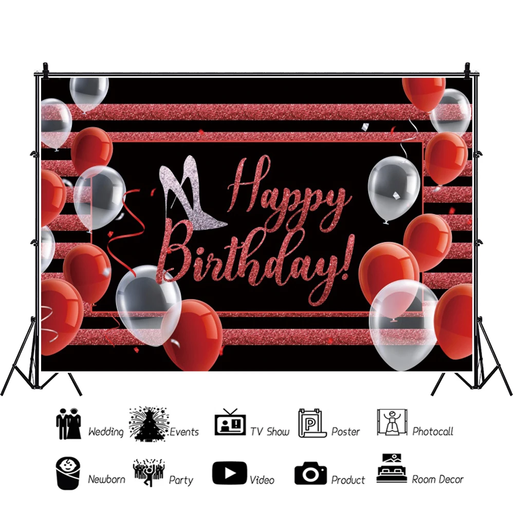 Laeacco воздушные шары красные черные полосы высокие каблуки счастливый женский день рождения Постер фото фон Фото фоны