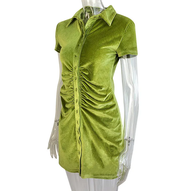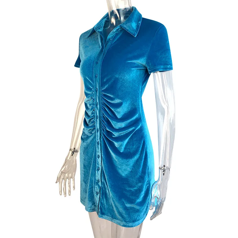 Платье-рубашка женское летнее, с коротким рукавом и отложным воротником