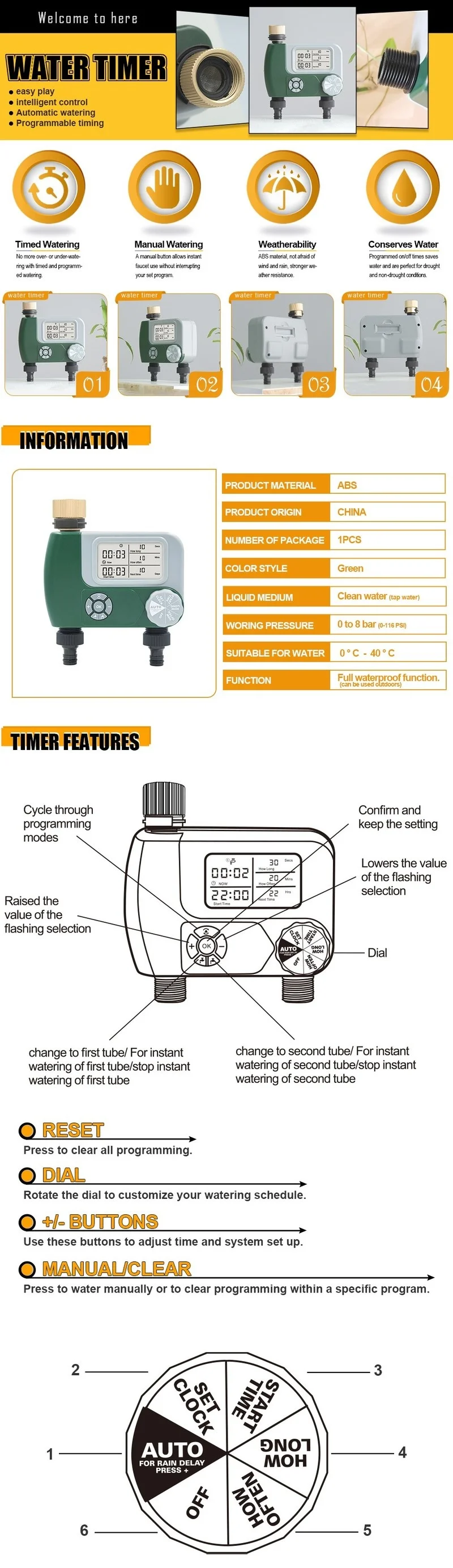 Вход таймера: 3/4 "Женская резьба шланга