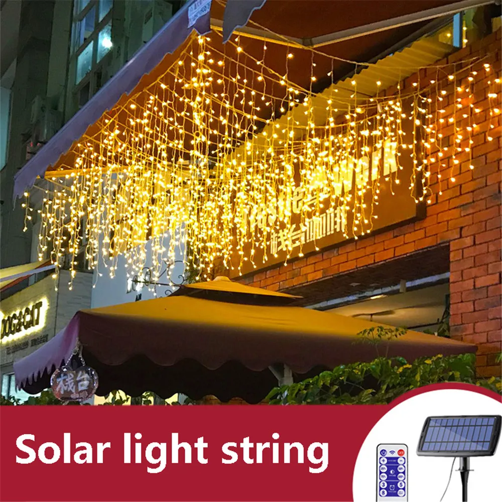 Светодиодный светильник для сосульки 3 м/5 м, солнечный светильник, наружный водонепроницаемый, для украшения праздника, свадьбы, вечеринки, занавес, садовый светильник с дистанционным управлением