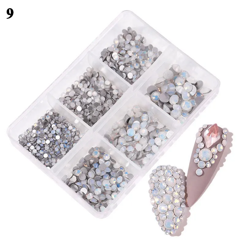 Красочный набор Стразы для ногтей с кристаллами AB, фарфоровые белы...