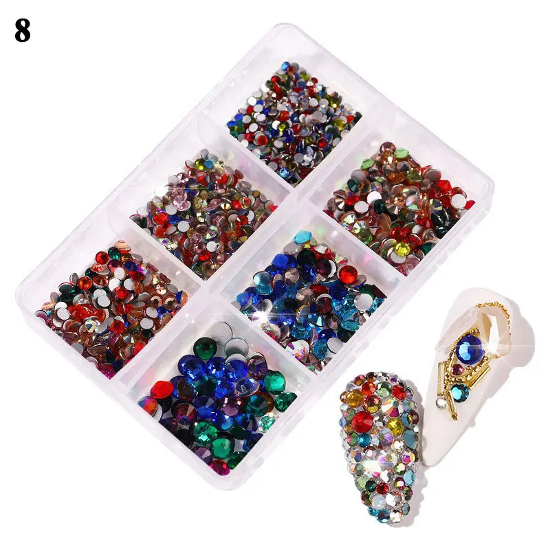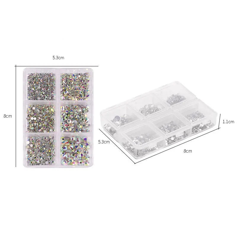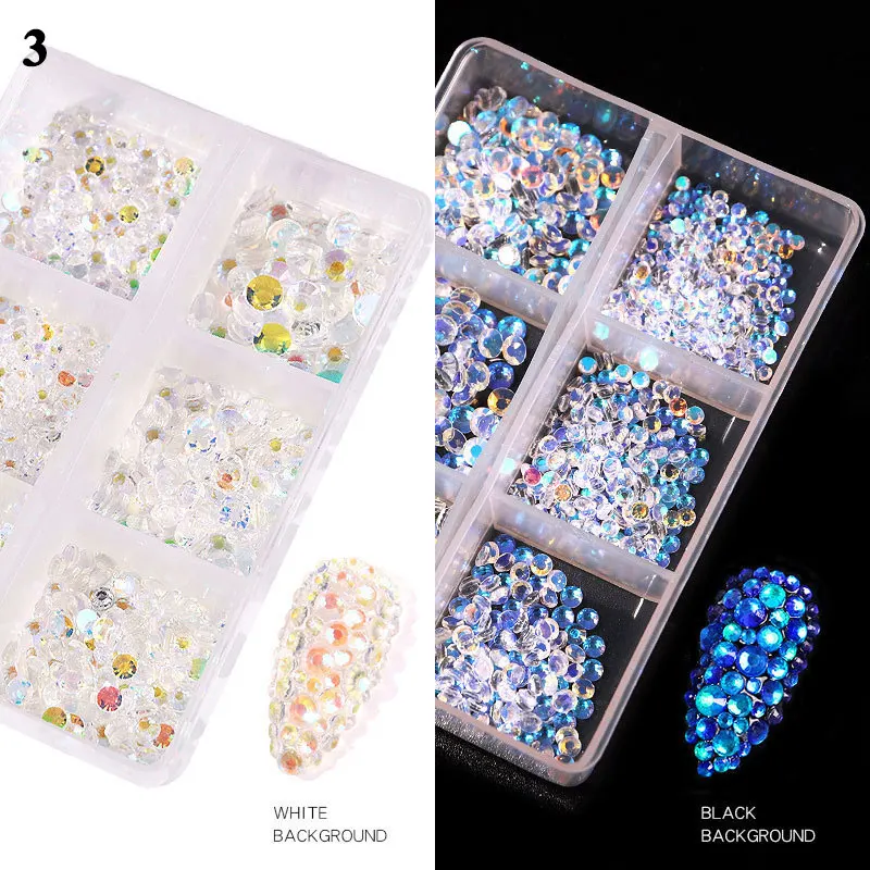 6 ячеек кристалл AB Стекло ногти Стразы смешанные Размеры 3D голови...