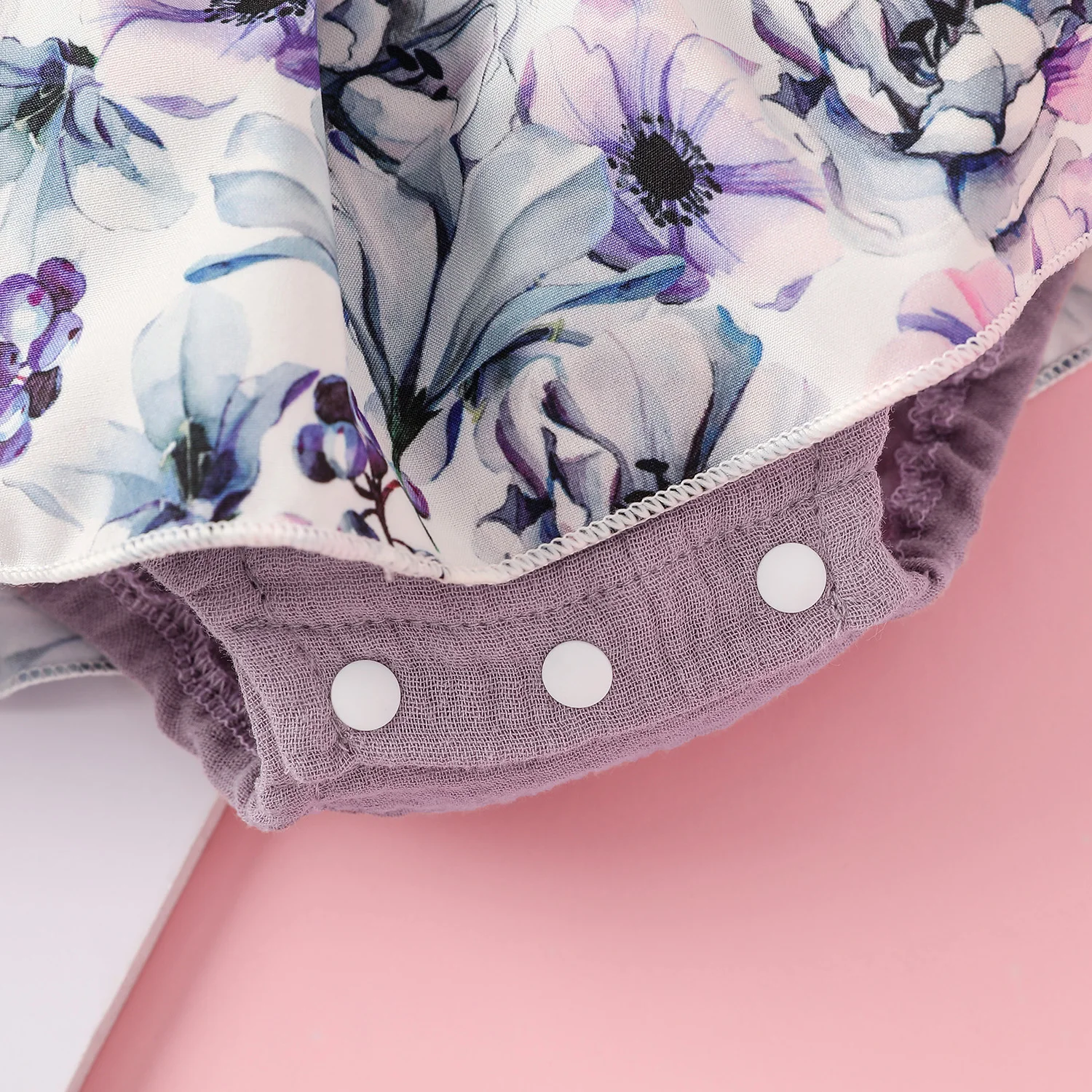 Комбинезон с оборками и цветочным принтом для новорожденных девочек, 7 цветов, повседневная одежда, 2 предмета
