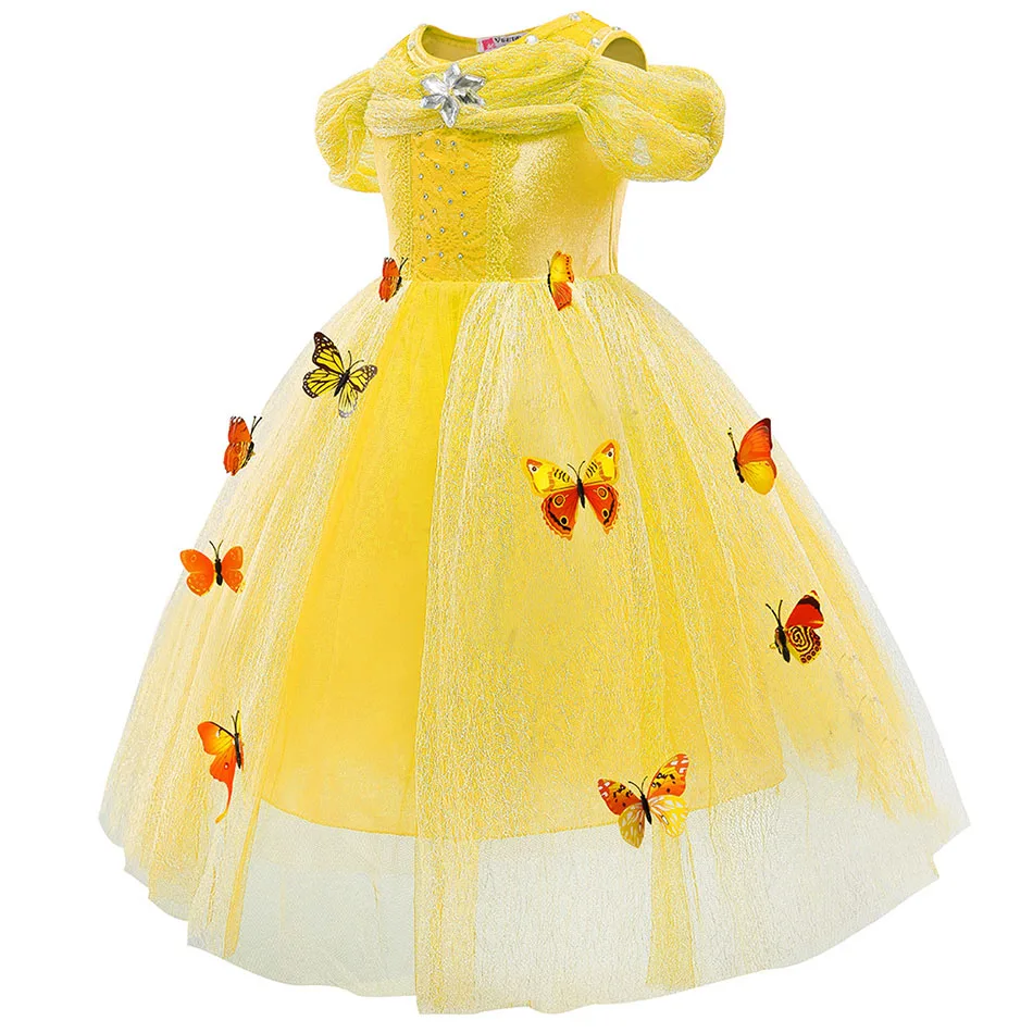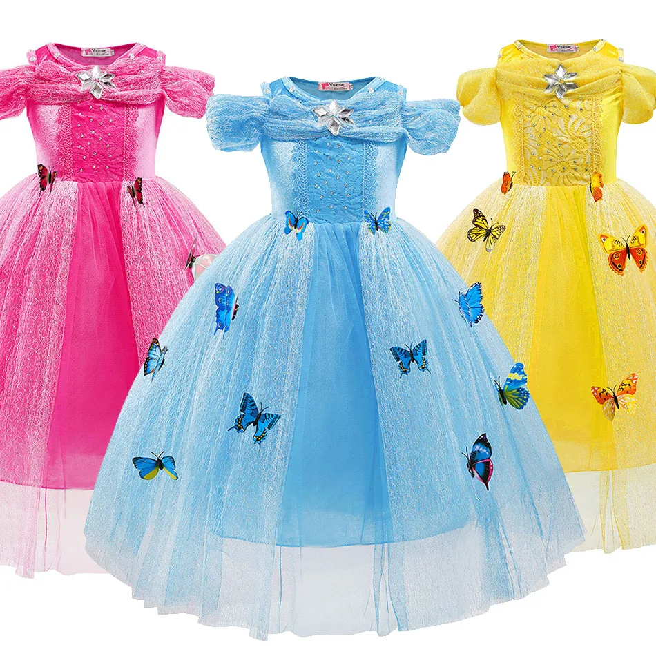 Одежда для девочек; Костюм принцессы; Бабочка Хэллоуин вечерние платье Золушки для детей, синий, розовый, желтый нарядное платье на день рождения платье для коронации принцесс