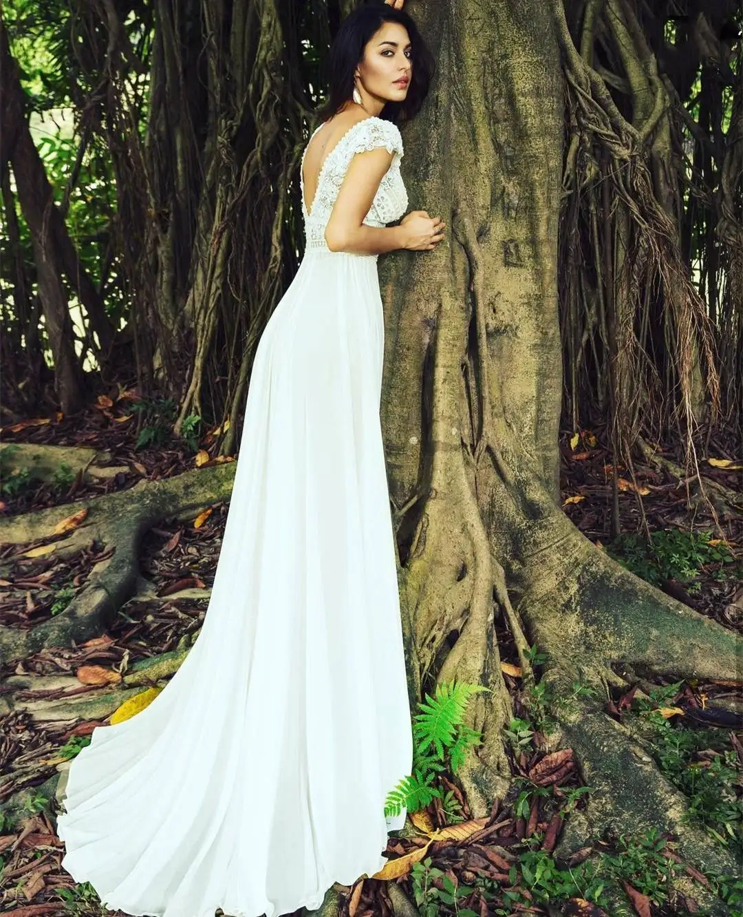 Шифоновые свадебные платья в стиле бохо 2021, с V-образным вырезом, в пол, простые пляжные платья с открытой спиной и рукавами-крылышками, богемные кружевные летние белые