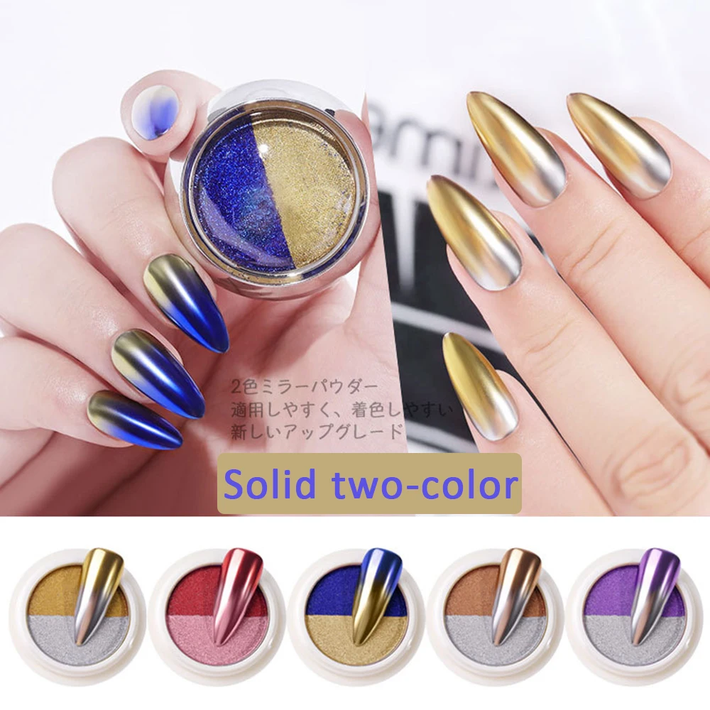 1 коробка, два цвета, твердый волшебный зеркальный ногтевой порошок...