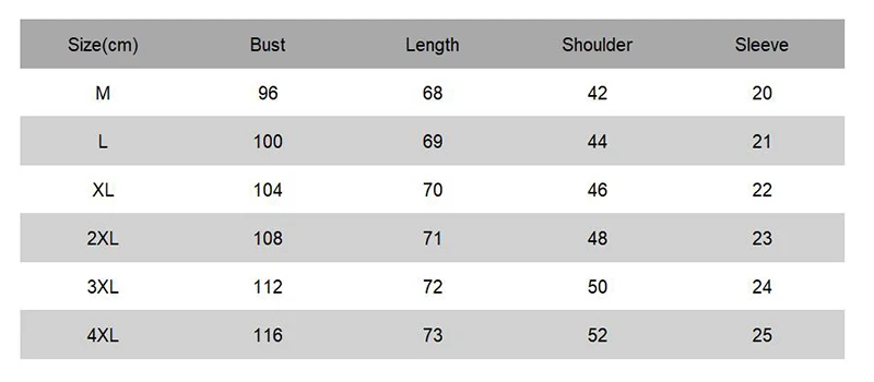 Размер (см) Бюст Длина Плечо Рукав М 96 68 42 20 L 100 69 44 21 XL 104 70 46 22 2XL 108 71 48 23 3XL 112 72 50 24 4XL 116 73 52 25Демонстрация товара