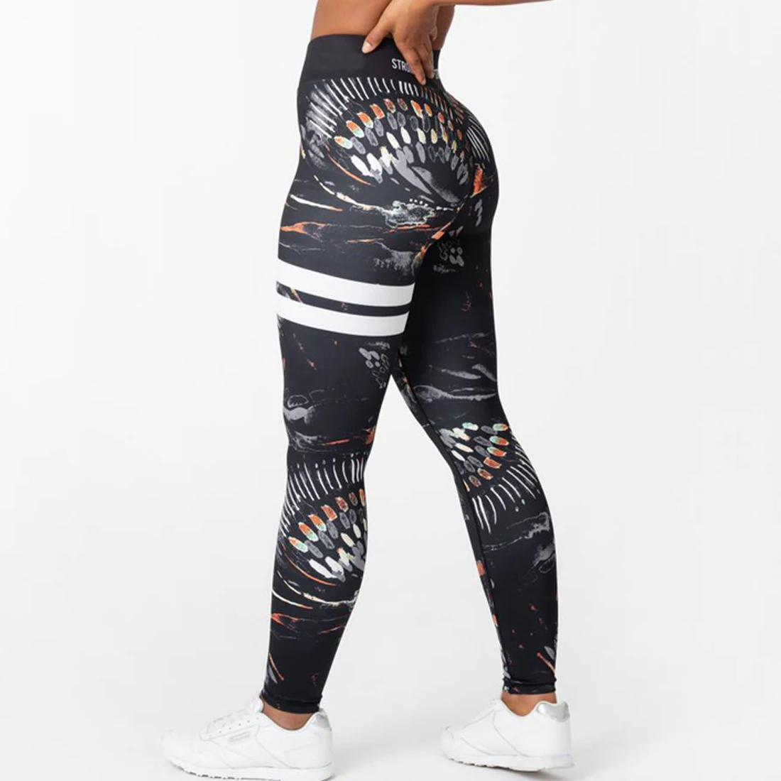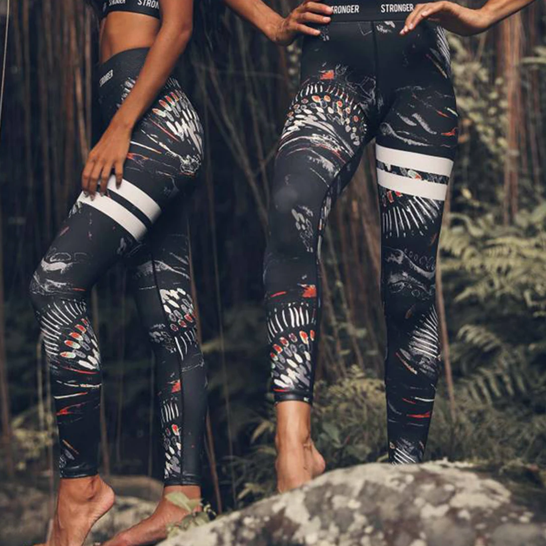 Женские леггинсы для фитнеса с принтом, длинные штаны с высокой талией, пуш-ап, спортивная одежда