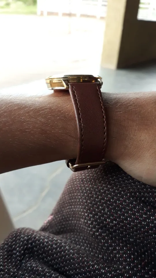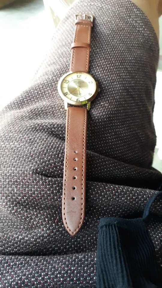 Получил в течение 26 дней. Штампованный «натуральная кожа», которого нет. Он даже пахнет как пластик. Качество не очень хорошее. См. Фото из-за неправильной строчки в браслете.