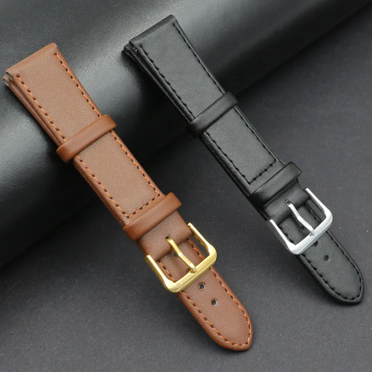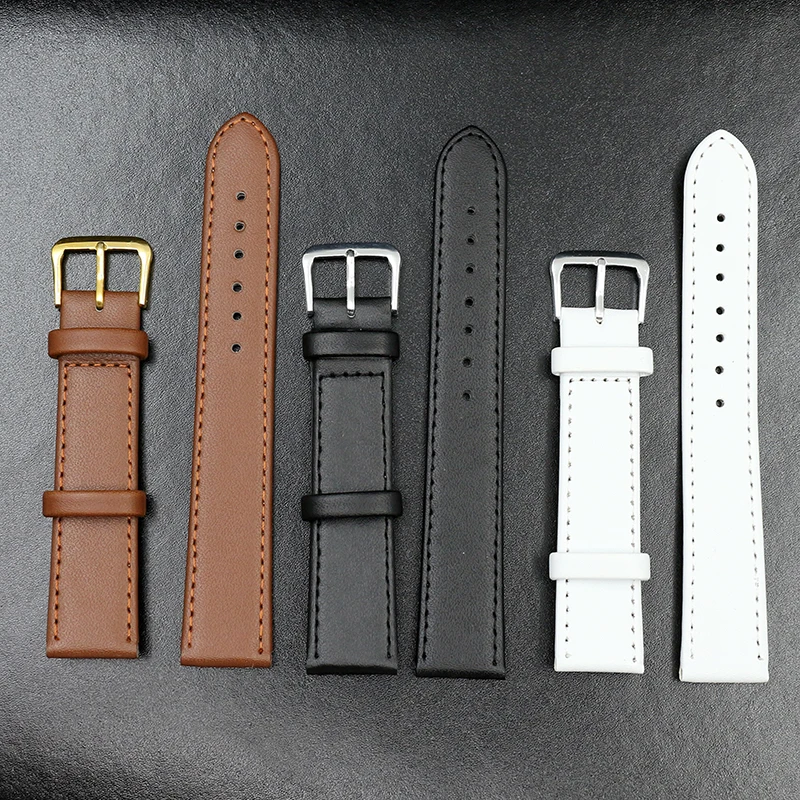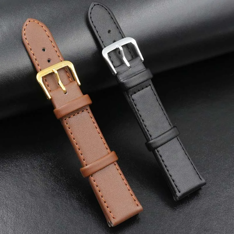 Ремешок из искусственной кожи для мужчин и женщин, черный коричневый браслет для наручных часов, 12 мм 14 мм 16 мм 18 мм 20 мм 22 мм 24 мм, аксессуары для часов