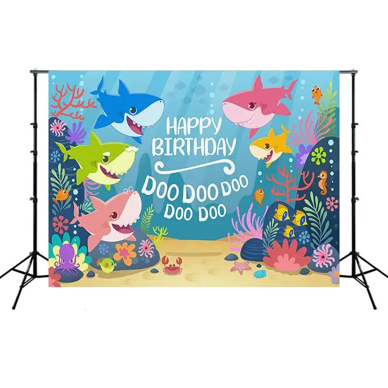 Фон для студийной фотосъемки с изображением океана, акулы, короны, кораллов, детского дня рождения