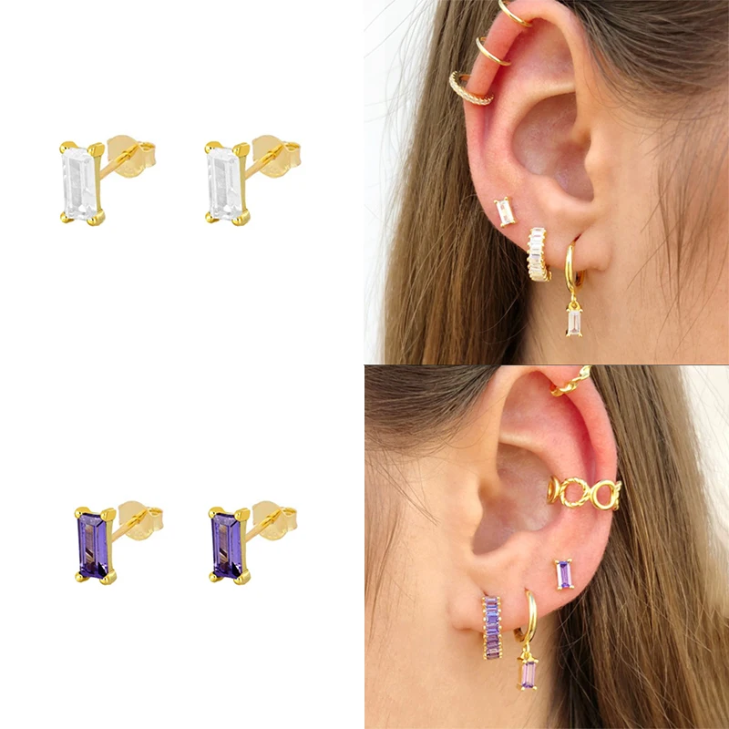 Женские серьги-кольца из 18-каратного золота, с фианитом