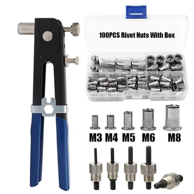 Набор ручных заклепочных гаек M3M4M5M6M8, 100 шт., ручная Резьбовая гайка, привод из нержавеющей стали, бытовые ремонтные инструменты