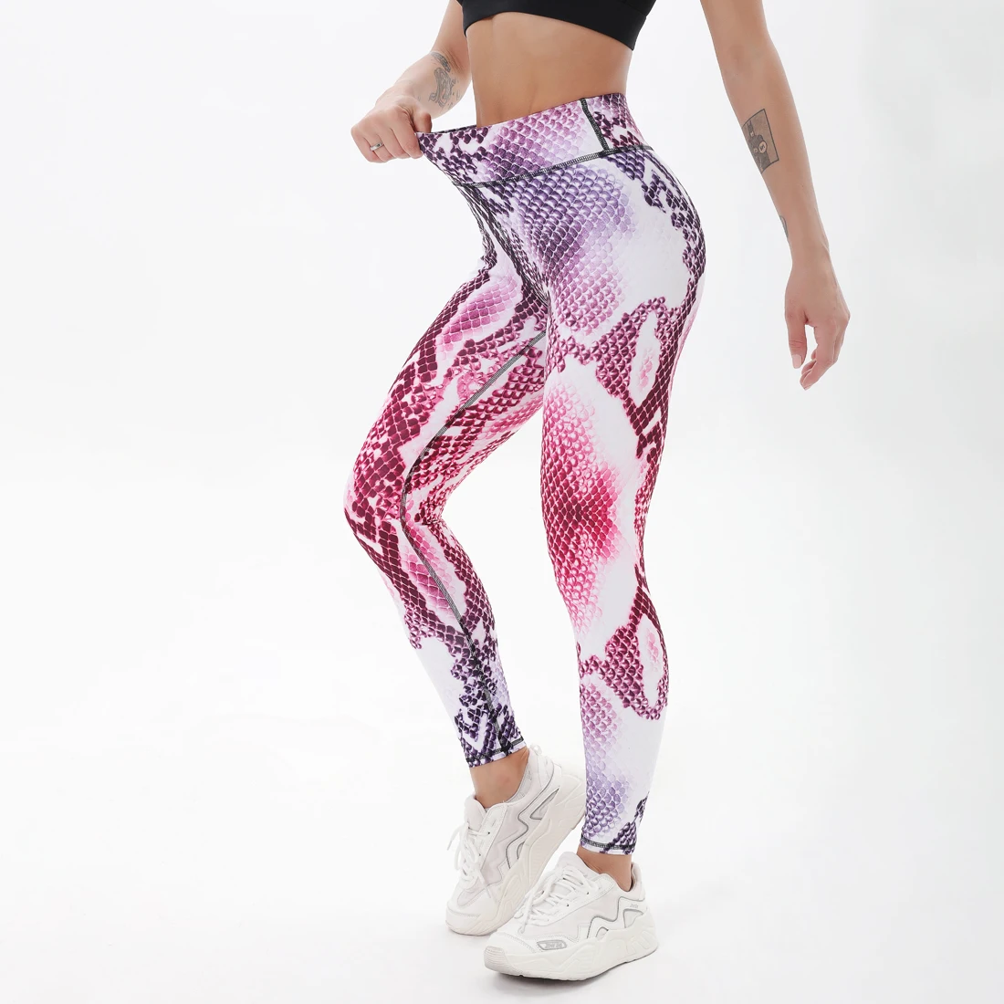 Женские леггинсы для фитнеса с градиентным змеиным узором, штаны с высокой талией для спортзала, женские леггинсы для тренировок и бега с принтом пуш-ап