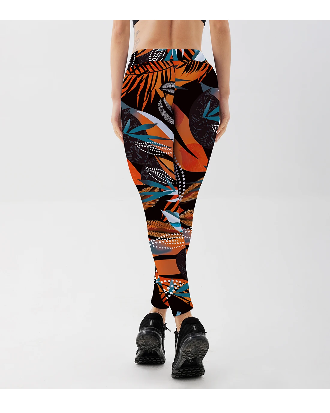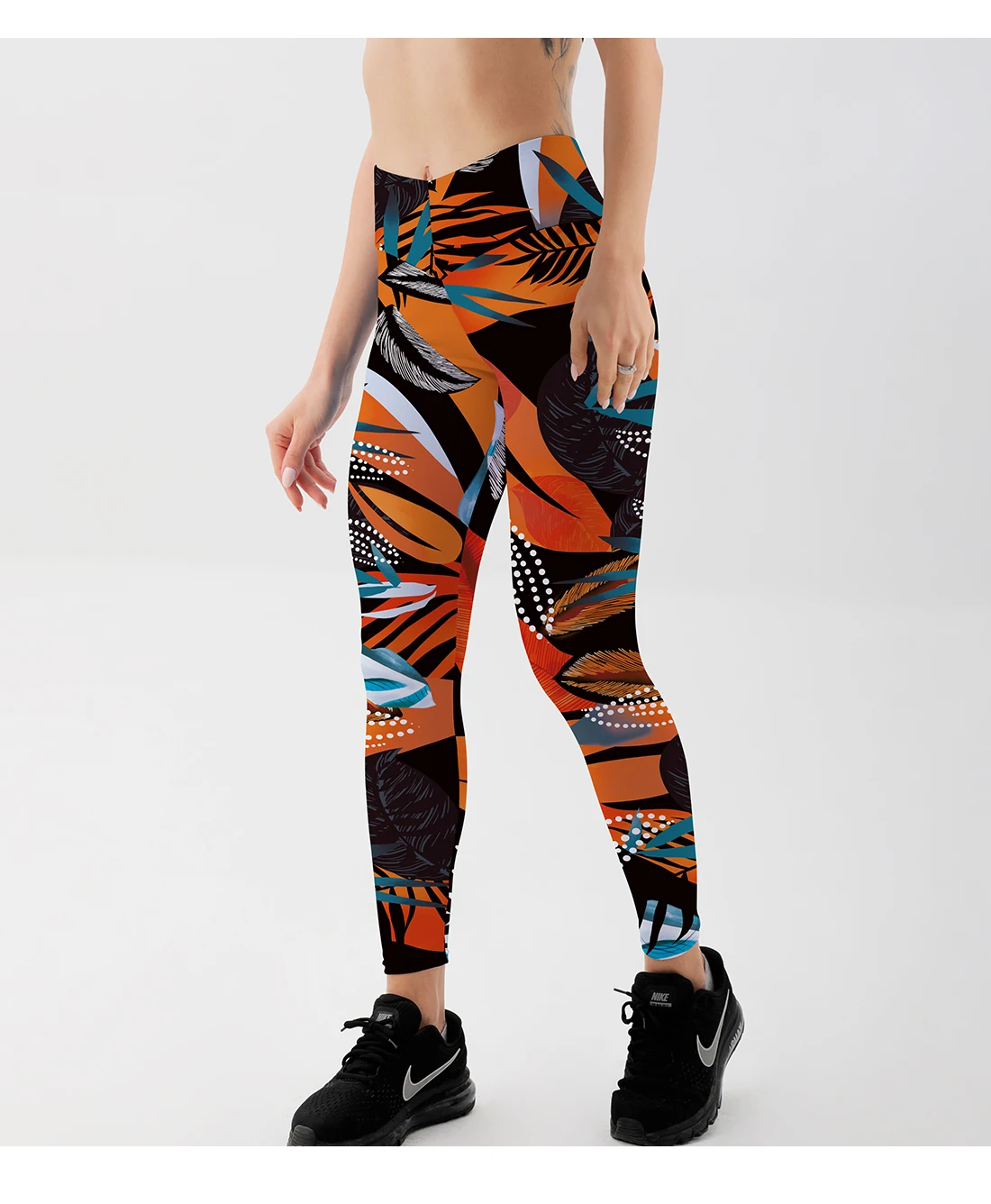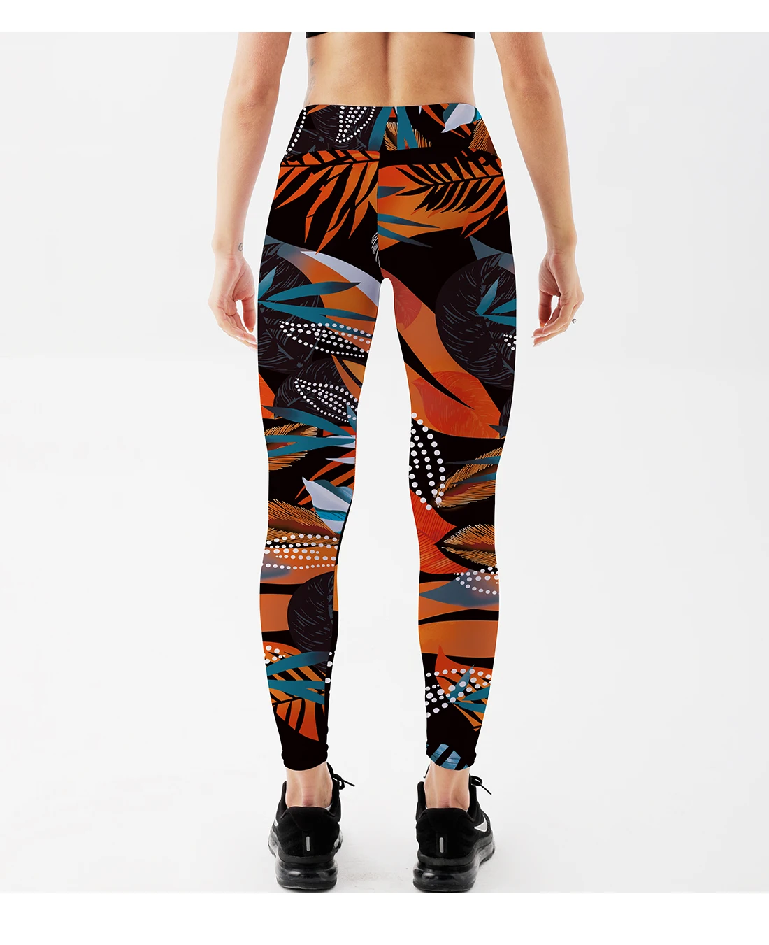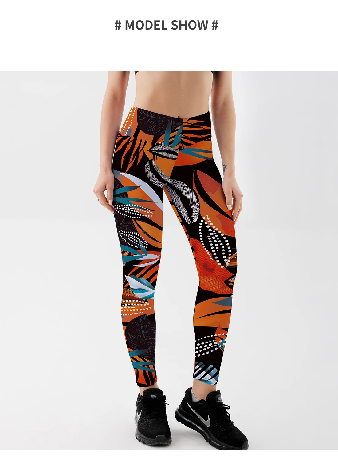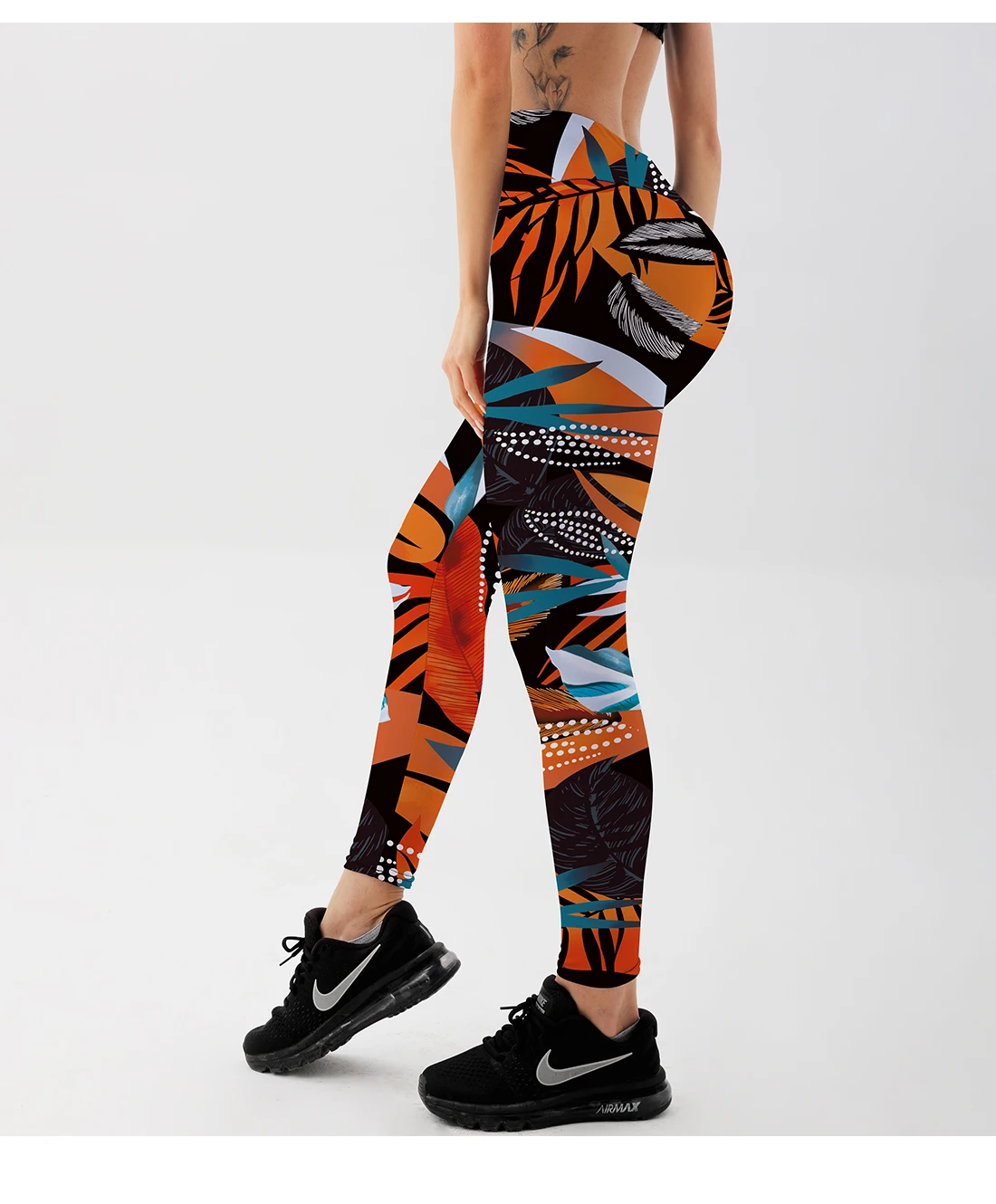 Леггинсы женские длинные для фитнеса, модные эластичные леггинсы до щиколотки с принтом желтых листьев, с завышенной талией, с эффектом пуш-ап