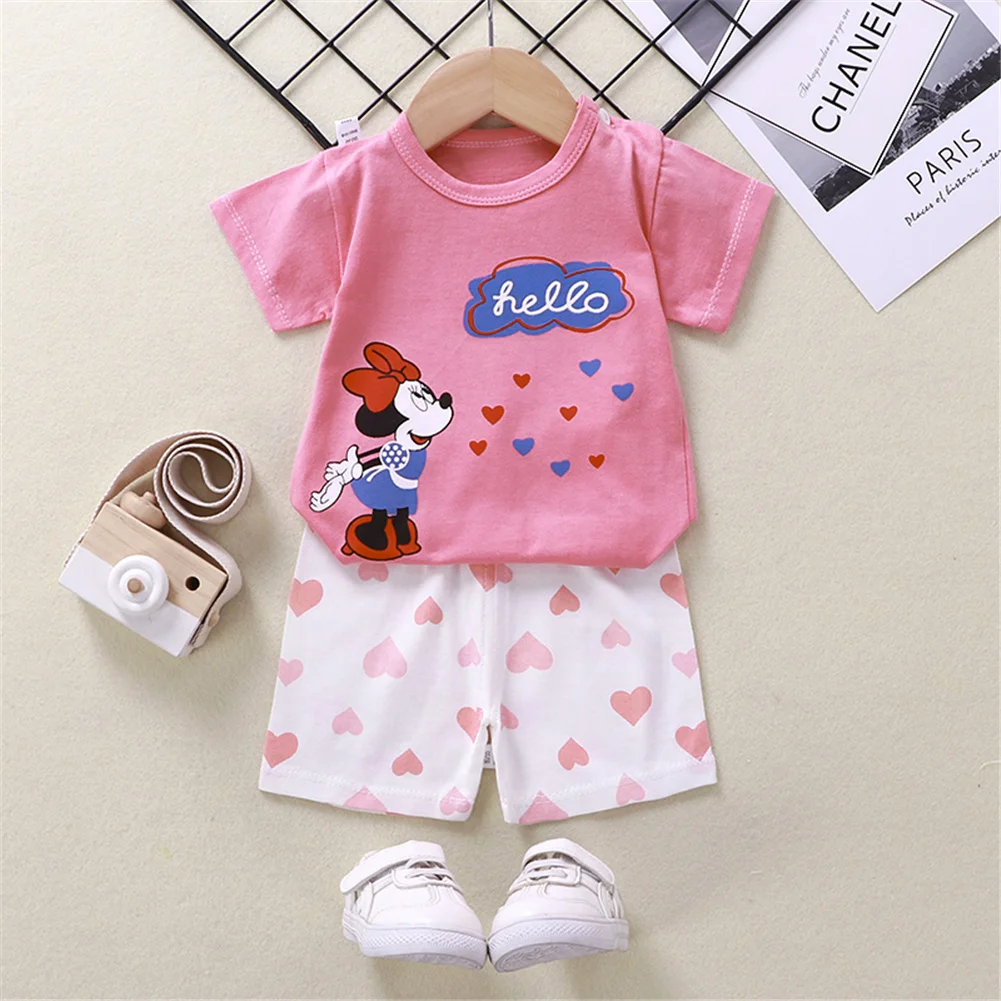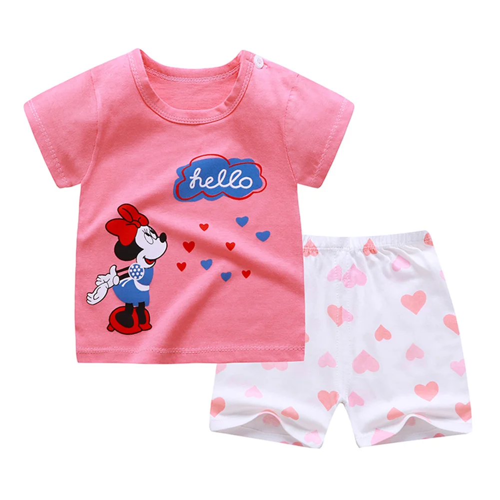 2021, домашняя одежда для мальчиков и девочек с короткими рукавами и мультяшным принтом + шорты, пижамный комплект из 2 предметов + Повседневный Детский костюм