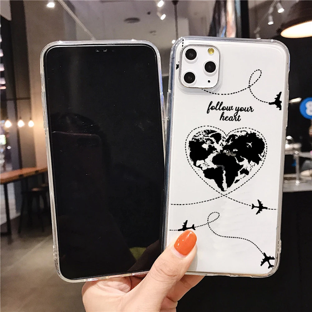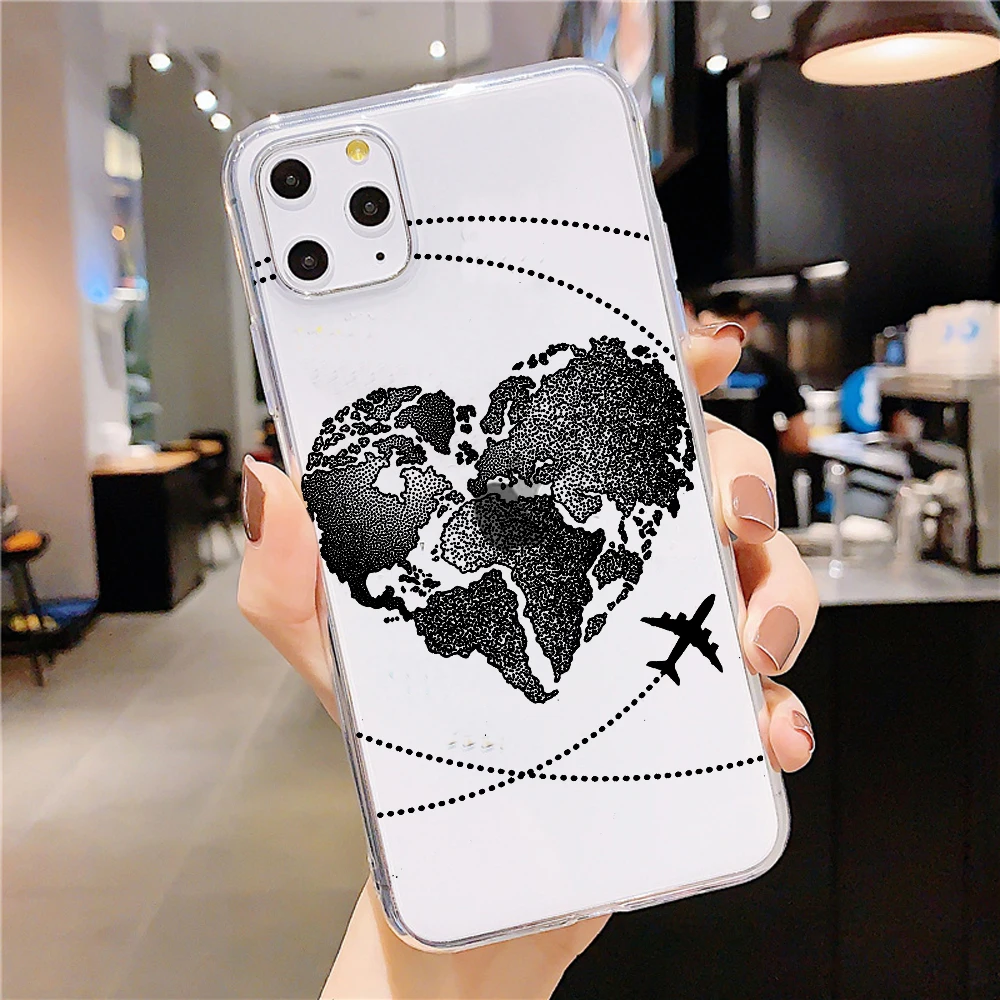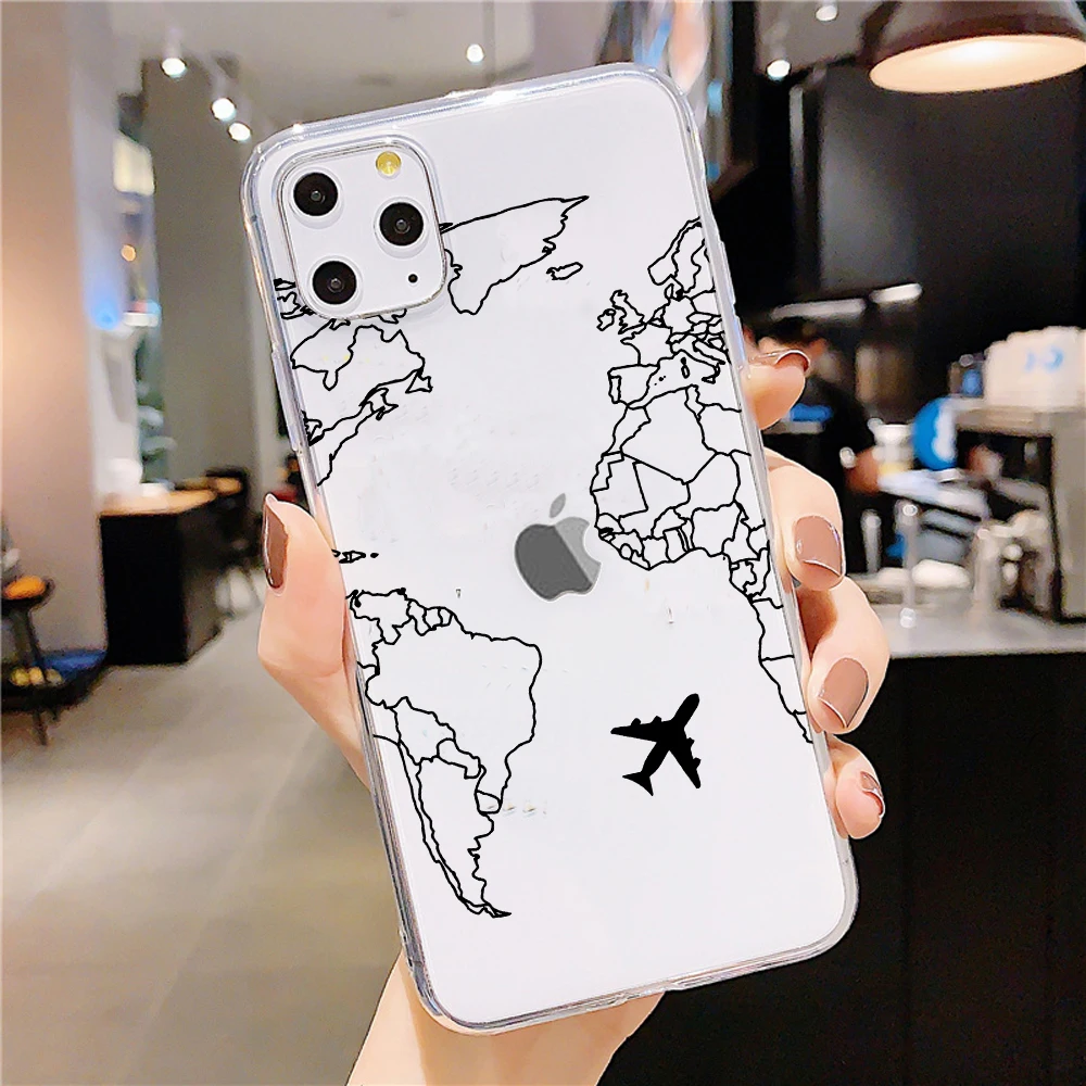 Чехол для iphone 12, Дорожная карта мира, мягкие чехлы из ТПУ для телефона iPhone 11 Pro Max 12Pro XS XR 7 8 Plus 6S SE2020, чехол с самолетом